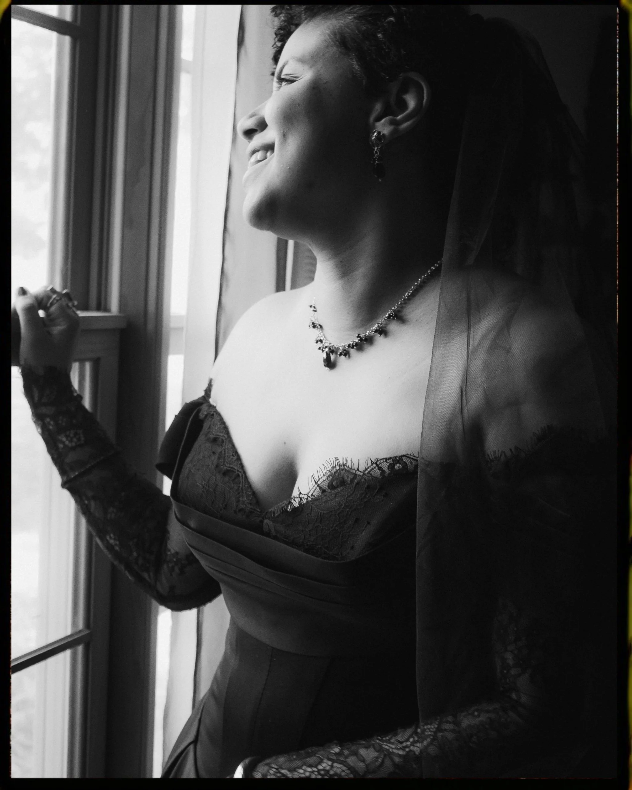 It’s like the gods answered my prayers. I wanted nothing more than to do a queer wedding on halloween and bam! Here comes Alicia reaching out on Chicago Queer Exchange Facebook group looking for a photographer for her wedding. Set in a quaint and beautiful farmland in western Illinois, two souls bound themselves together for a lifetime. I was lucky enough to be chosen to capture their special day, these are their photos. Starting off slow and with a budding excitement you can feel in every frame, is the getting ready stage. Hidden in two rooms across the hall from each other, Alicia with her mom and John with his brothers, the two began the process of donning their wedding attire. I literally asked Alicia for the link to her dress because it was so beautiful! A gothic queen if I’ve ever seen one. For these photos I focused on detail shots of the outfits and the major moments like putting on a tie or lacing up the corset.