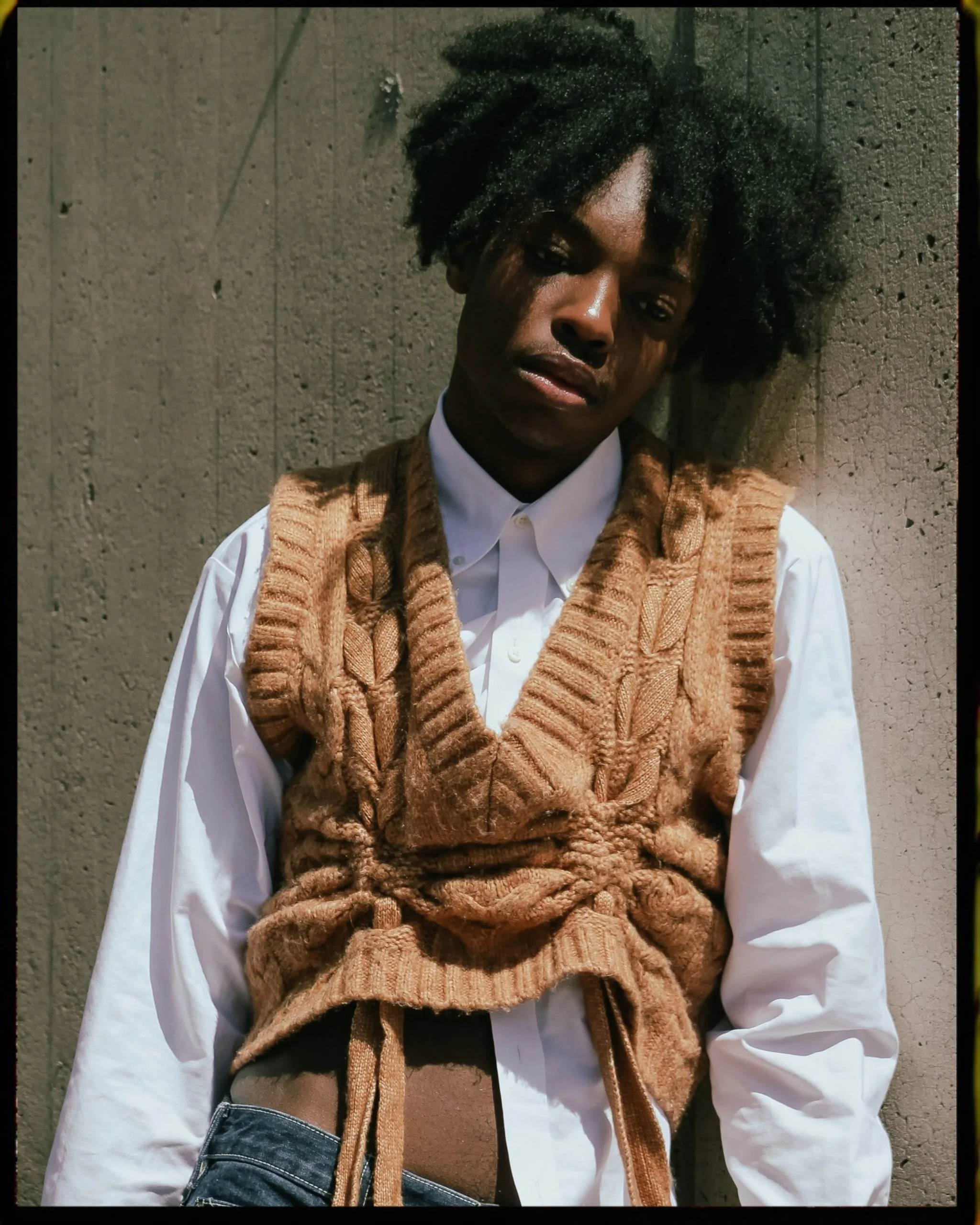 Chris is an amazing stylist, model and creative director in his own right. The area he has the most experience and passion for however is styling. I wanted to highlight that but with him as the model and a little bit of a storyline added too. It was a sunny and windy summer day in downtown Boston which worked wonderfully for us as he’d opted for a layered look with movement and a free hairstyle. This enabled us to get diversity in our shots despite not having outfit changes other than removing one or two articles of clothing. Chris has an uncanny ability to go from goofing around and dancing one second to “locked in” the next. I directed him lightly in poses I thought most flattering for the clothes but he served face all on his own, delivering looks full of pensive emotions. These shots feel like bts images of a model on set, on break but still serving.
