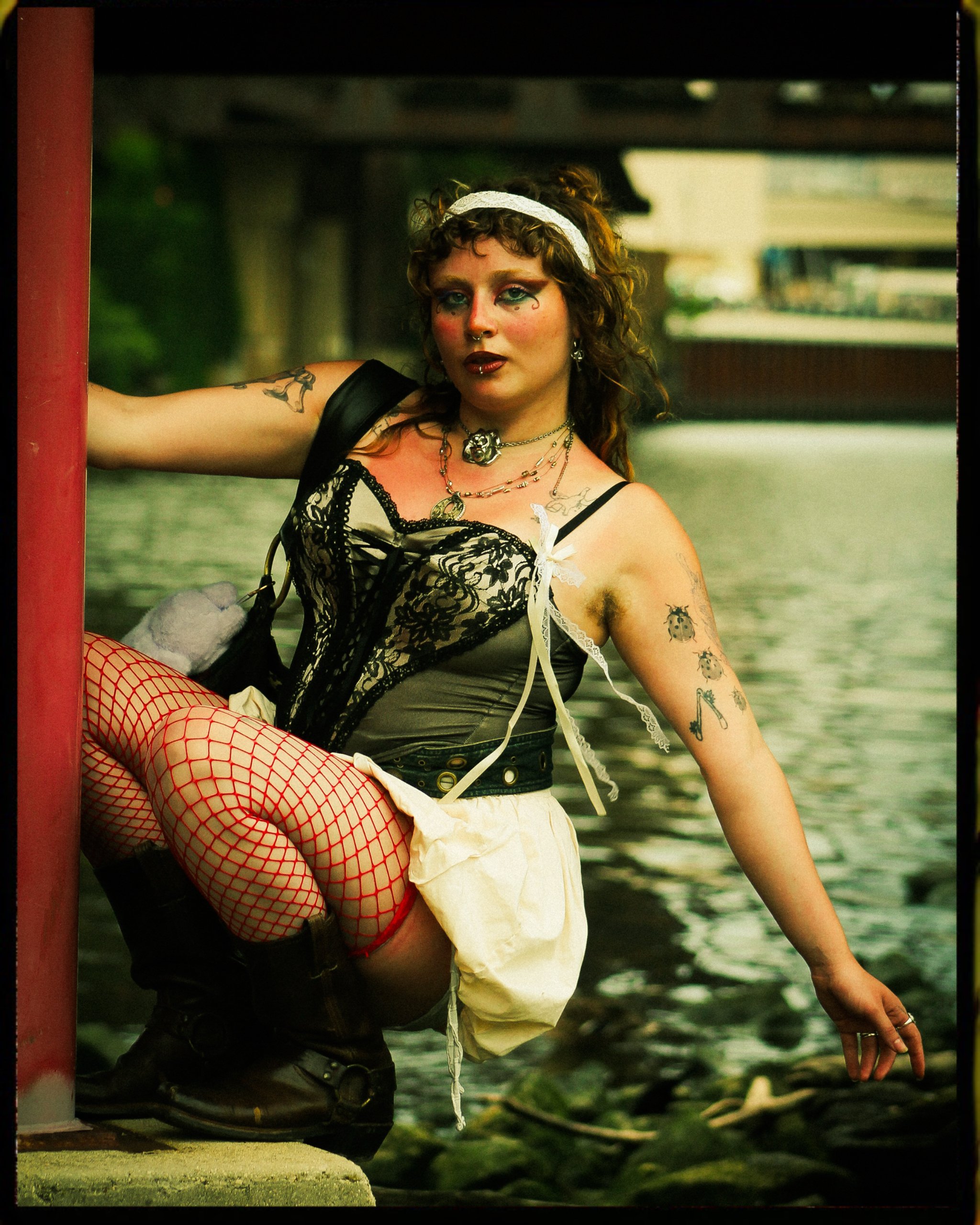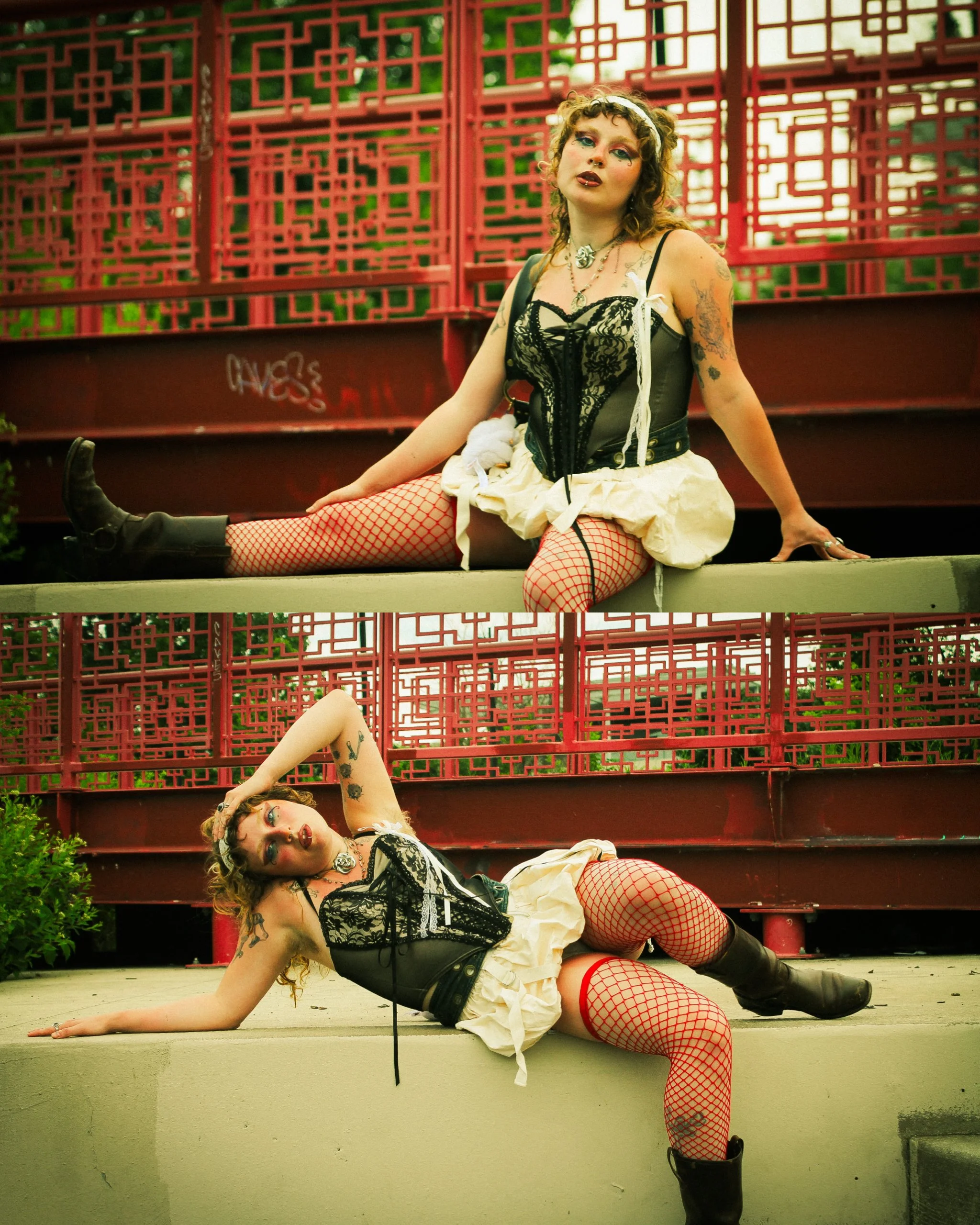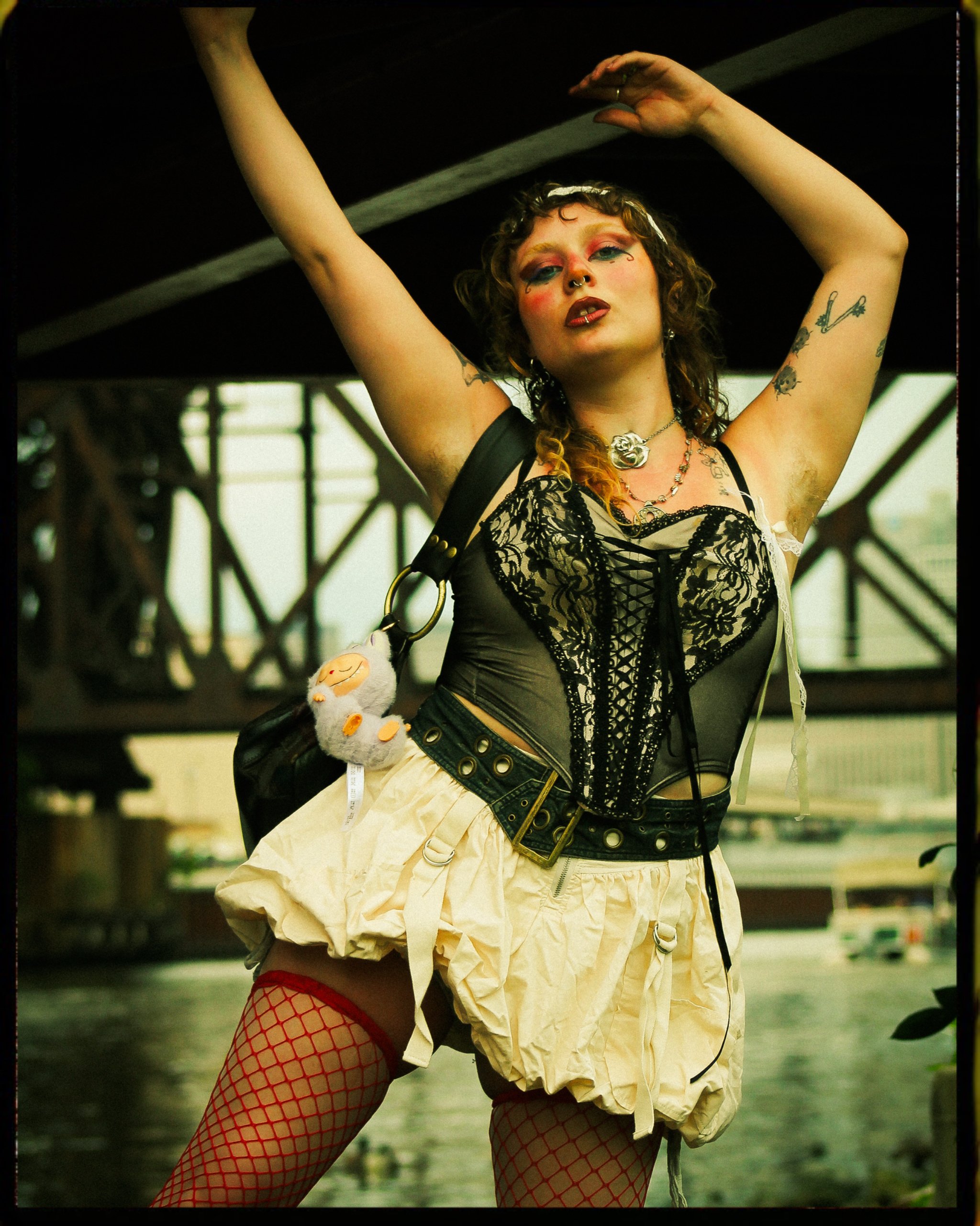 Hope was one of my first artistic muses in photography. Their energy, their style, and their willingness to get weird has always made them the perfect partner in creating interesting photoshoots. Despite moving out of Boston, that’s not something I will ever fully say goodbye to. So after a year and some change, the financial stars aligned and they were able to afford a trip to come visit me in Chicago. That of course meant, creating together. There was absolutely no solid plan or concept for this shoot. Before they came we facetimed and built an interesting outfit together from their vintage and thrifted closet. The style that emerged was very Harajuku girl aesthetic. When they got here I gave no direction for makeup, and the look they put together was whimsical, colorful, and beautiful.