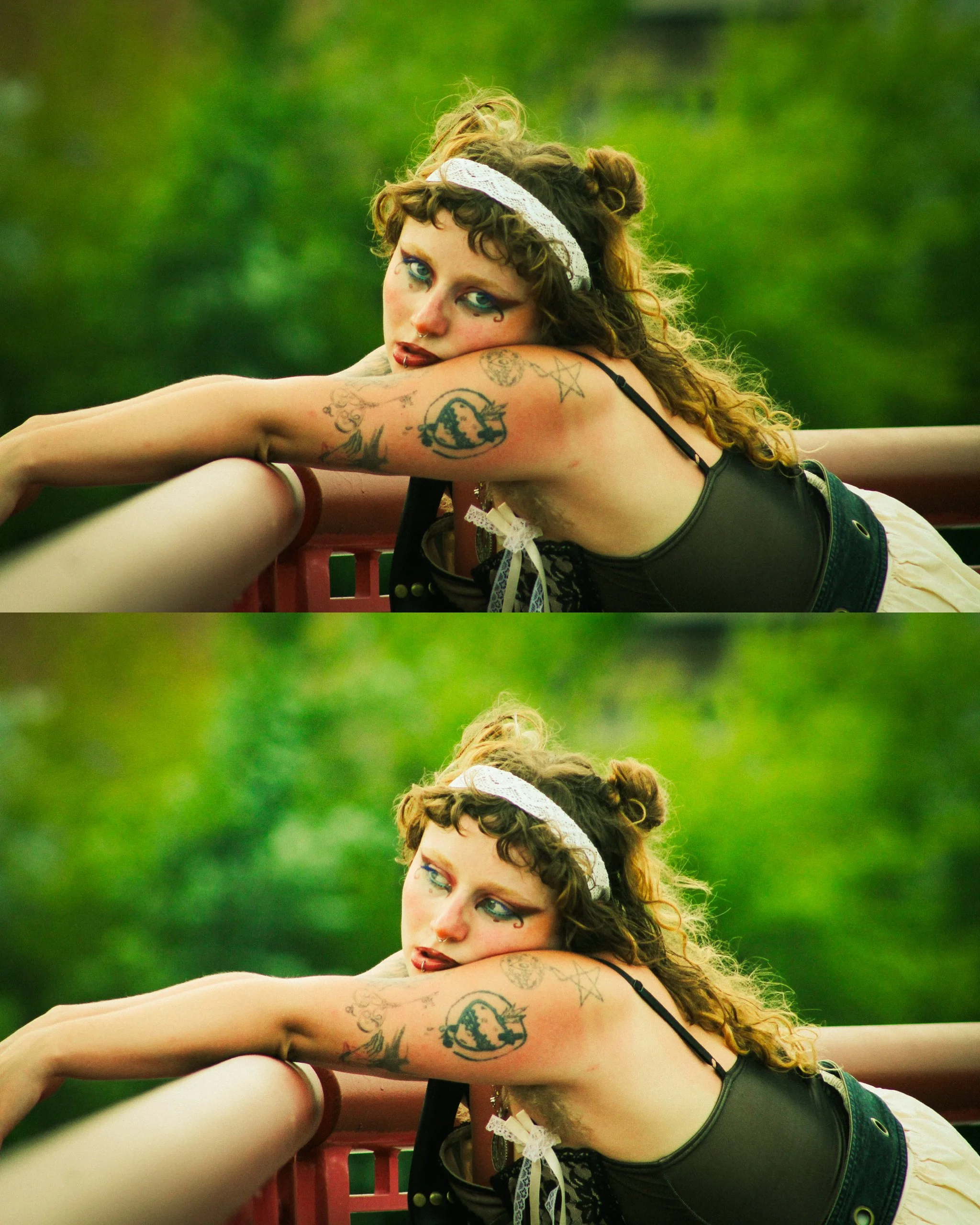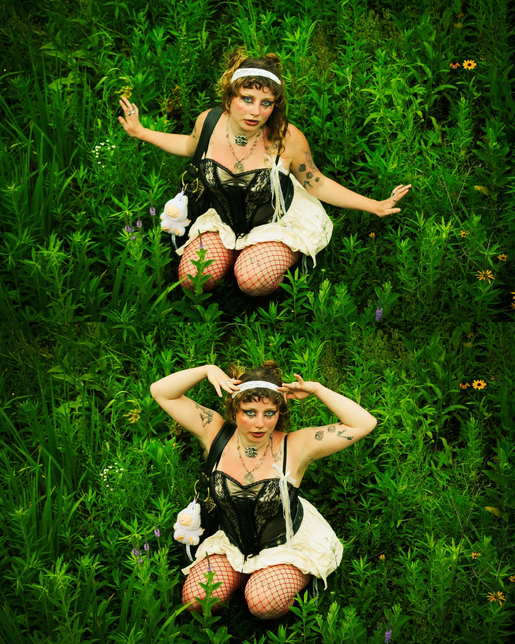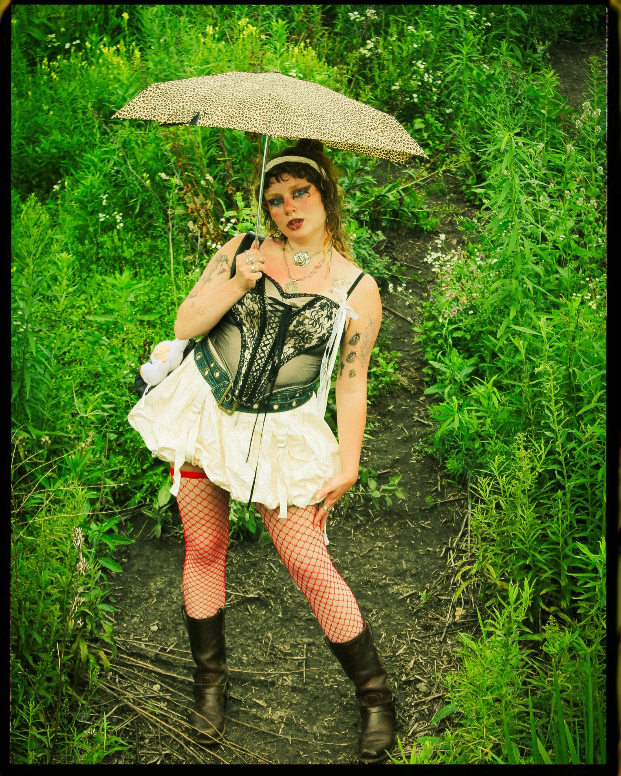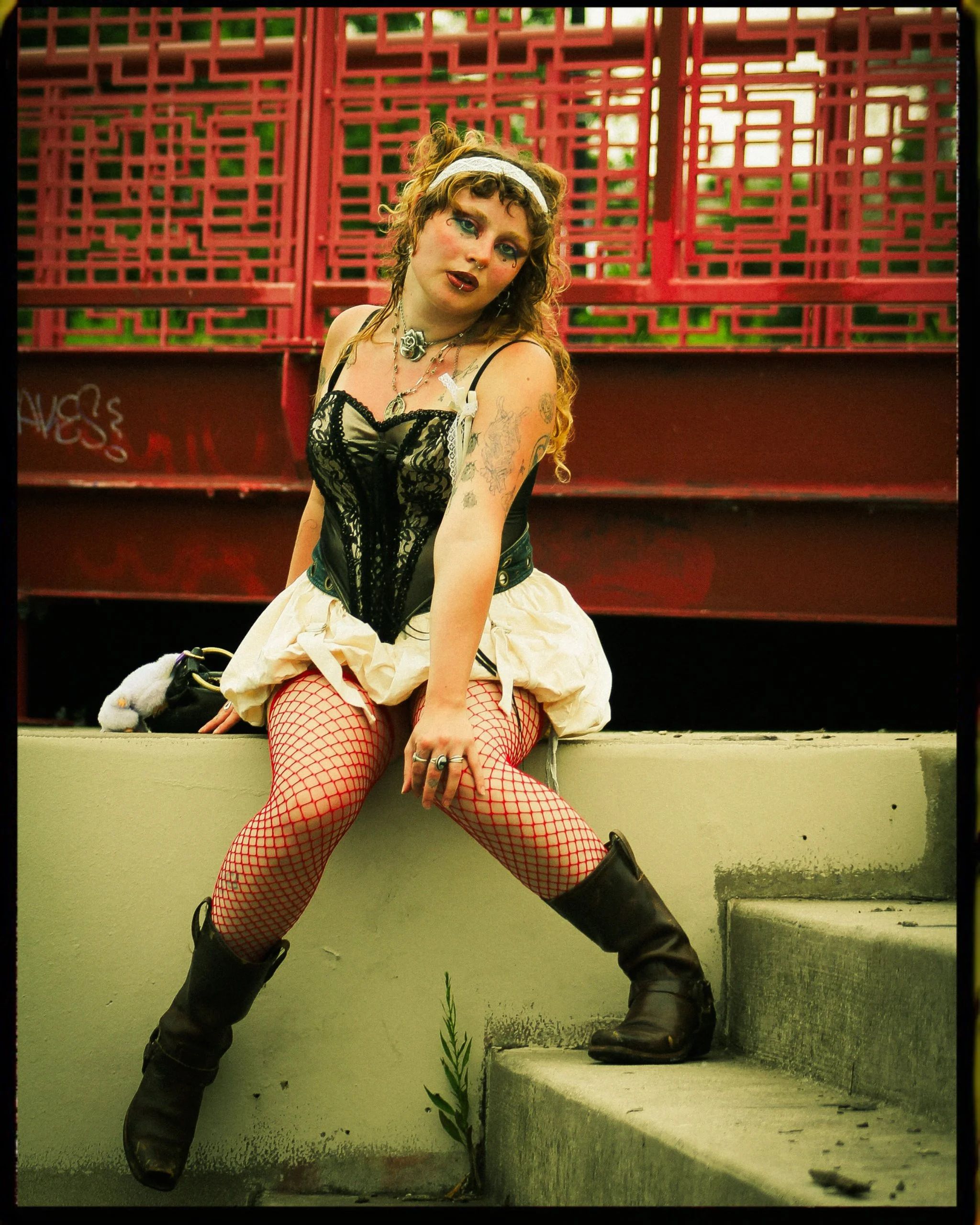 Hope was one of my first artistic muses in photography. Their energy, their style, and their willingness to get weird has always made them the perfect partner in creating interesting photoshoots. Despite moving out of Boston, that’s not something I will ever fully say goodbye to. So after a year and some change, the financial stars aligned and they were able to afford a trip to come visit me in Chicago. That of course meant, creating together. There was absolutely no solid plan or concept for this shoot. Before they came we facetimed and built an interesting outfit together from their vintage and thrifted closet. The style that emerged was very Harajuku girl aesthetic. When they got here I gave no direction for makeup, and the look they put together was whimsical, colorful, and beautiful.