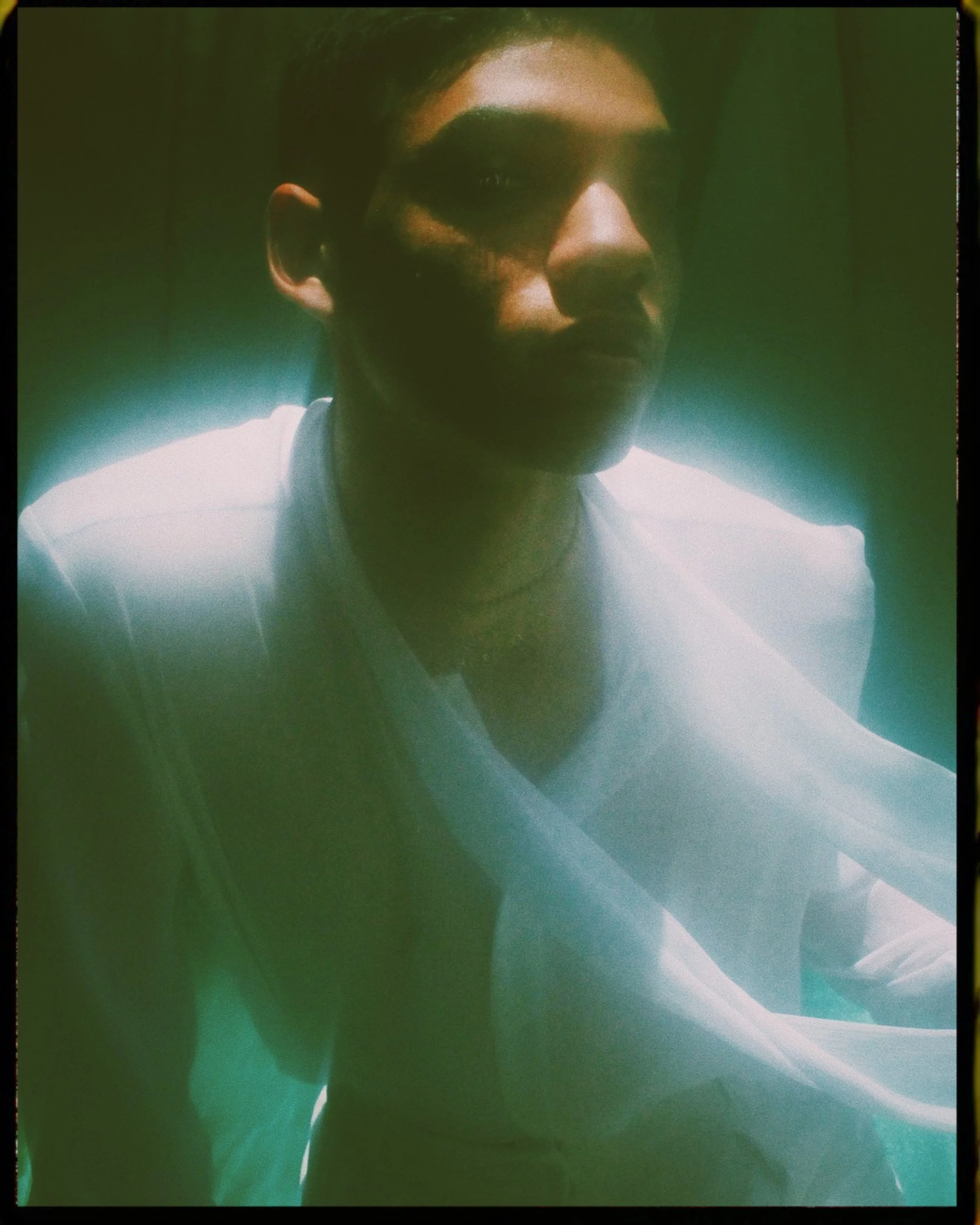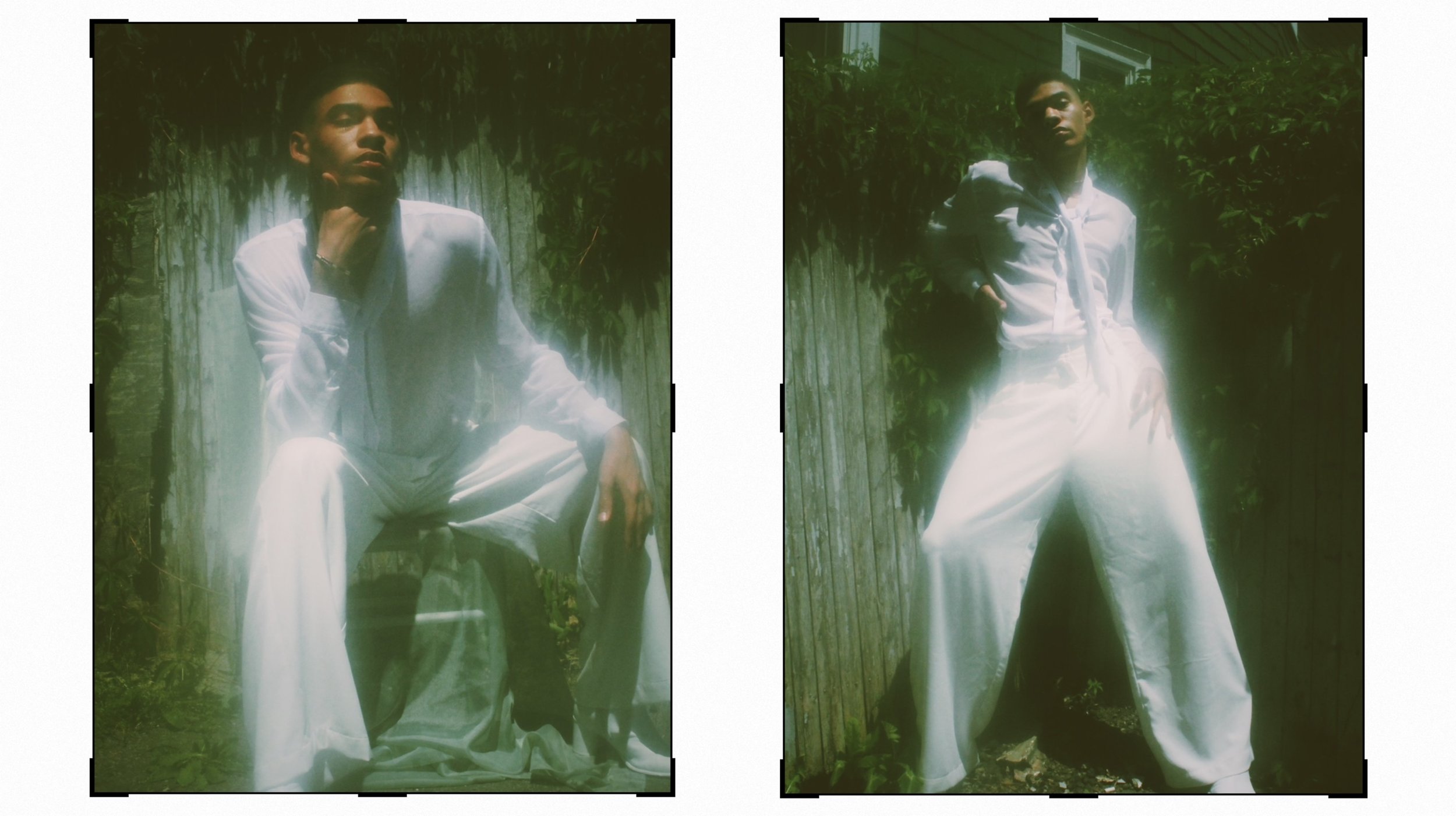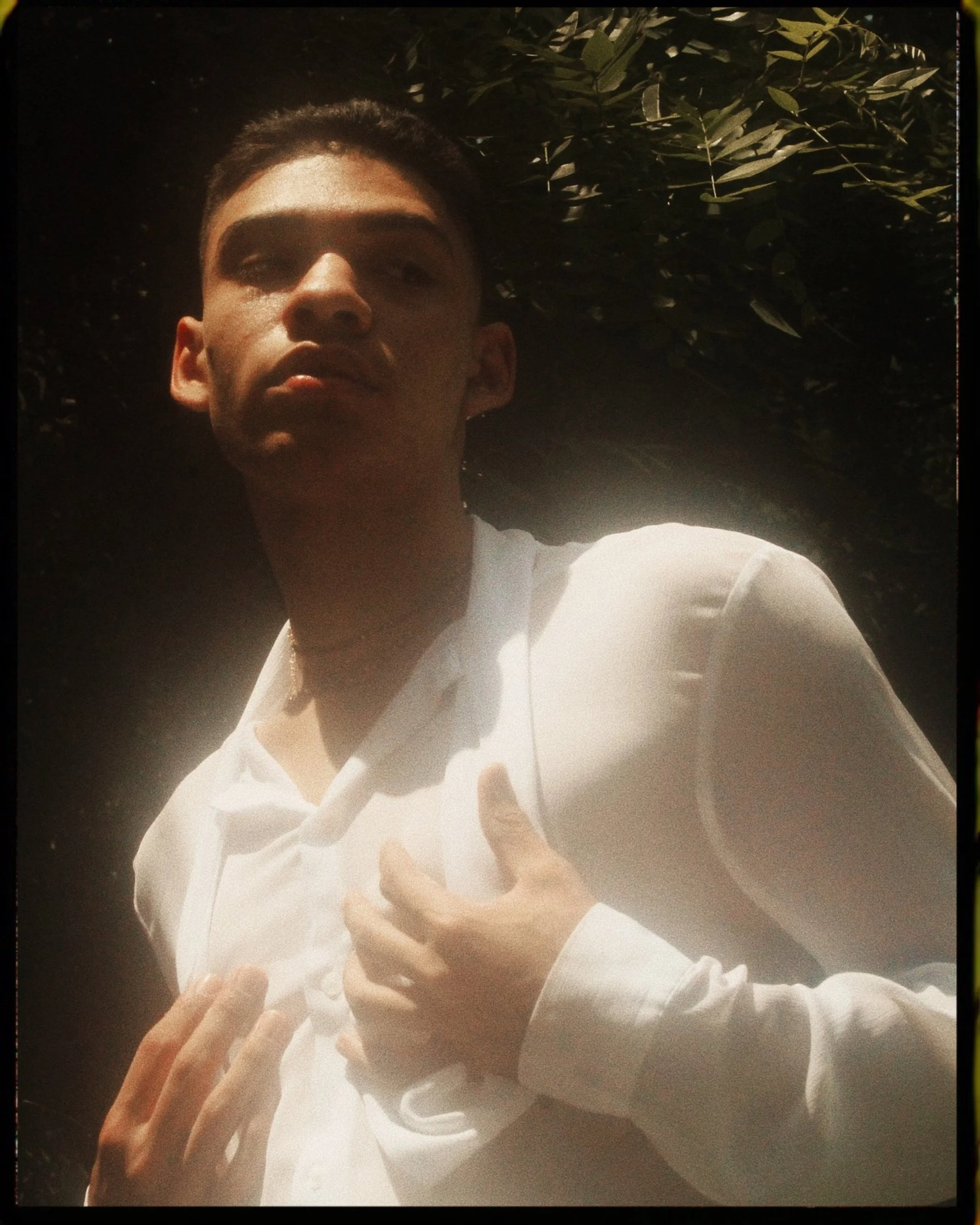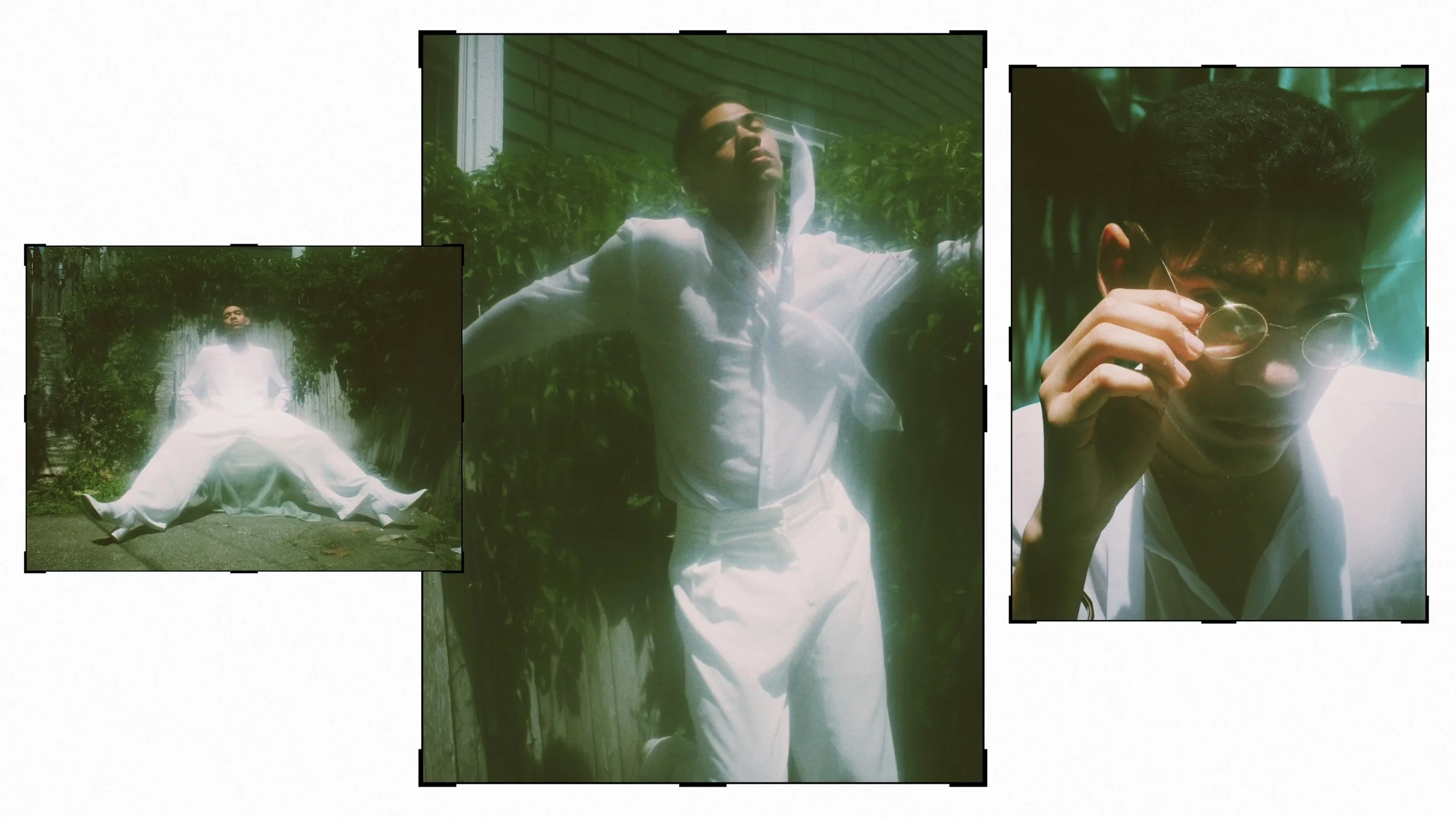 After learning how to get that dreamy effect for cheap on your lens (a little forehead grease), I really wanted to create my version of a magazine cover shoot. A solid color outfit, strong and dramatic posing, blurred edges and haze all around. Jazmany decided on an all white flowy fit that shined beautifully in the summer sun. We went into my backyard where I built a small set with some billowy satin fabrics and set up a chair. The story became a dazzling angel alighting in your backyard for a quick fashion shoot. I put a lot of distance between me and Jazmany for most shots to capture the full length of his limbs and make him appear larger than life. I aimed for ethereal, magical, heavenly, and an overall cool mood.