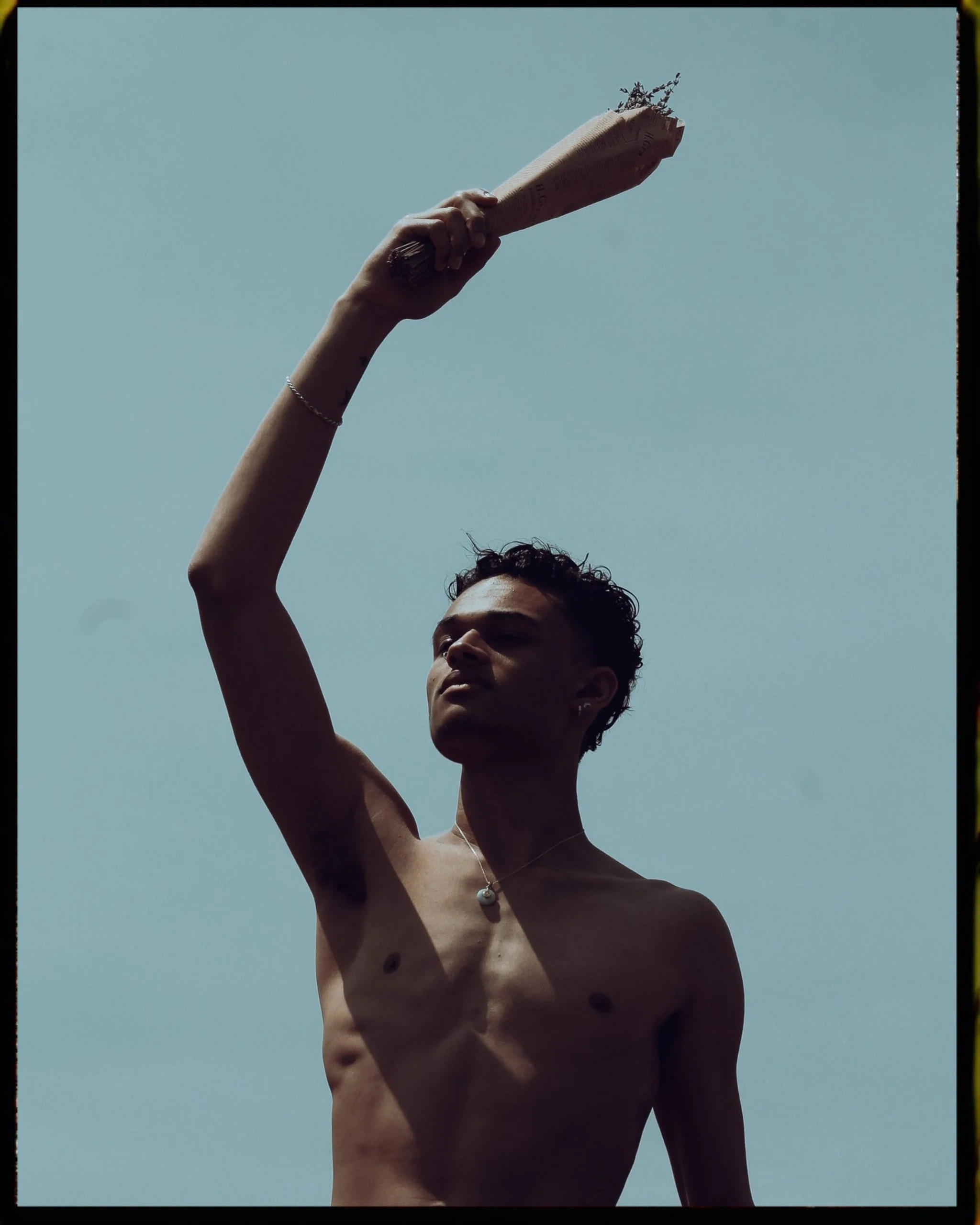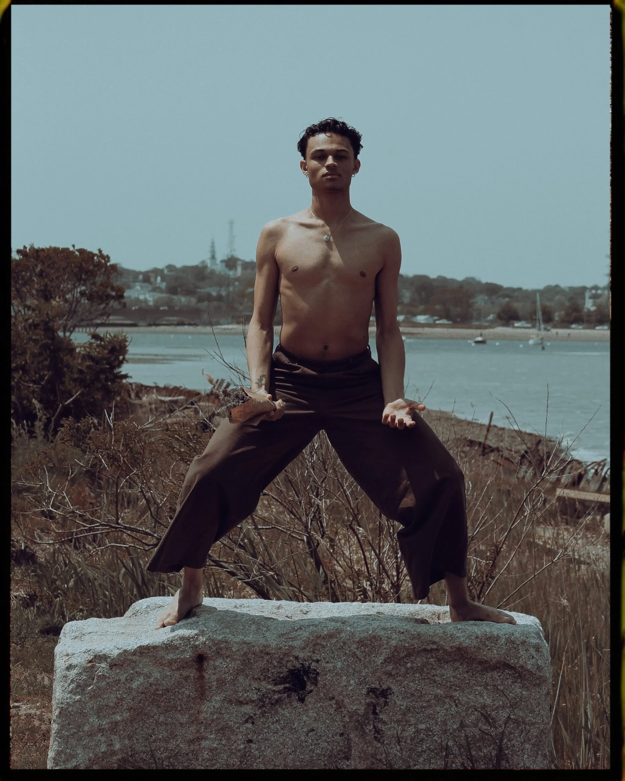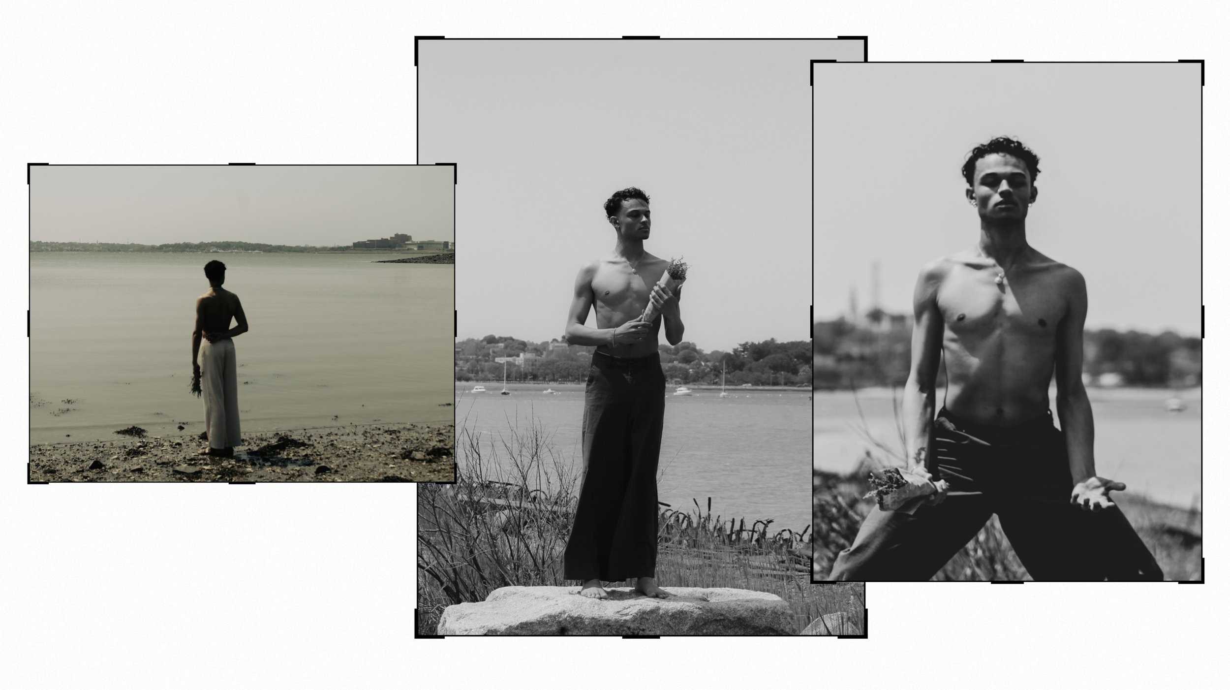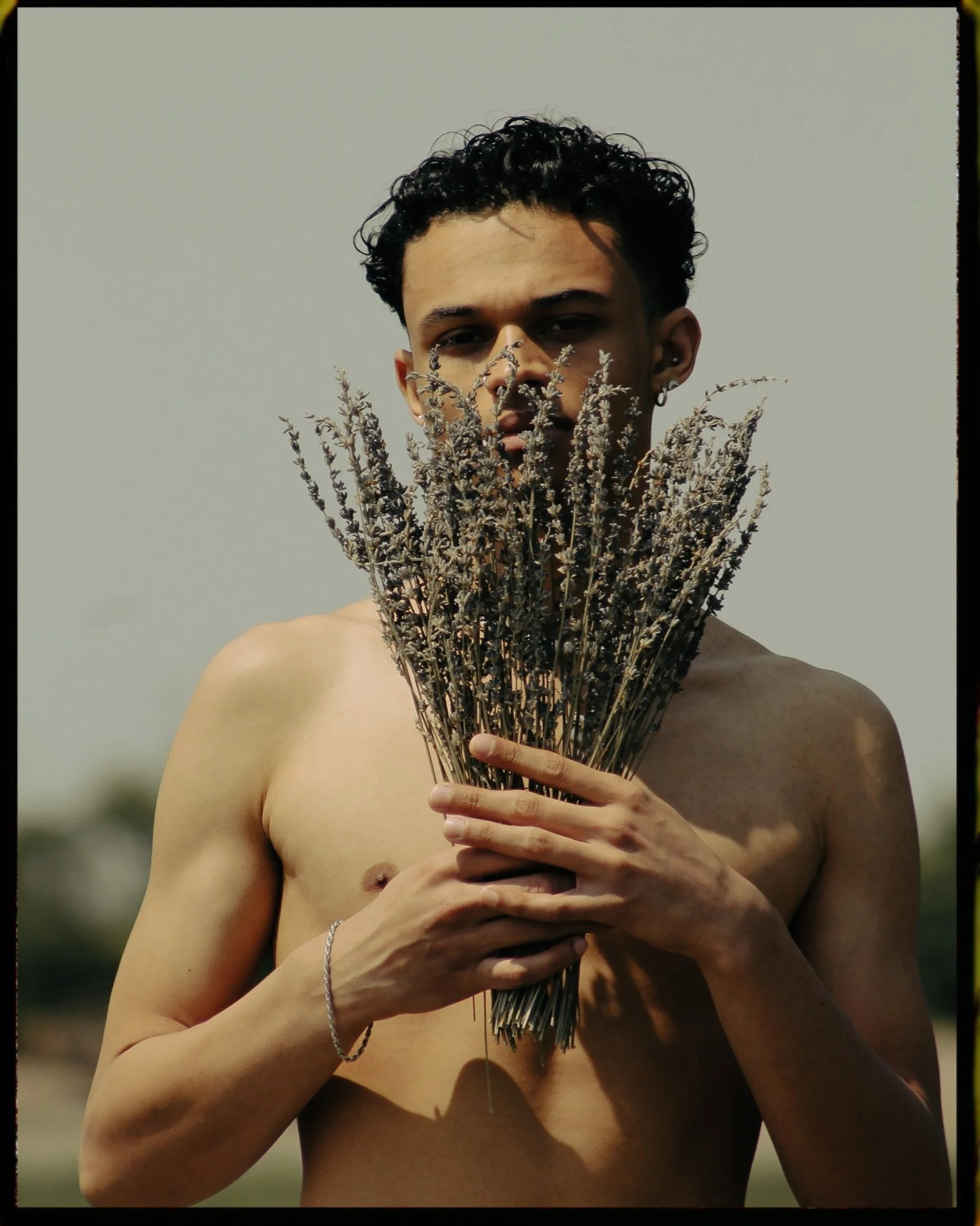 I had a dried bouquet of lavender and a vision. Something soft(a theme present in many of my shoots), romantic, dark, longing, and thoughtful. Johnny had free time and a car and so we set off to a nearby beach. It was thankfully completely empty and we were able to truly channel the loneliness and desire I was looking for. I wanted to focus on the strength of his body(honed with years in dance) and juxtapose it with the quiet darkness in his mind. In movies and music videos solitary walks along the beach often follow heartbreak or the pain of loss. Finding peace in the sound of crashing waves and realizing the triviality of ones problems in the face of an endless ocean were two emotions I wanted to come across.