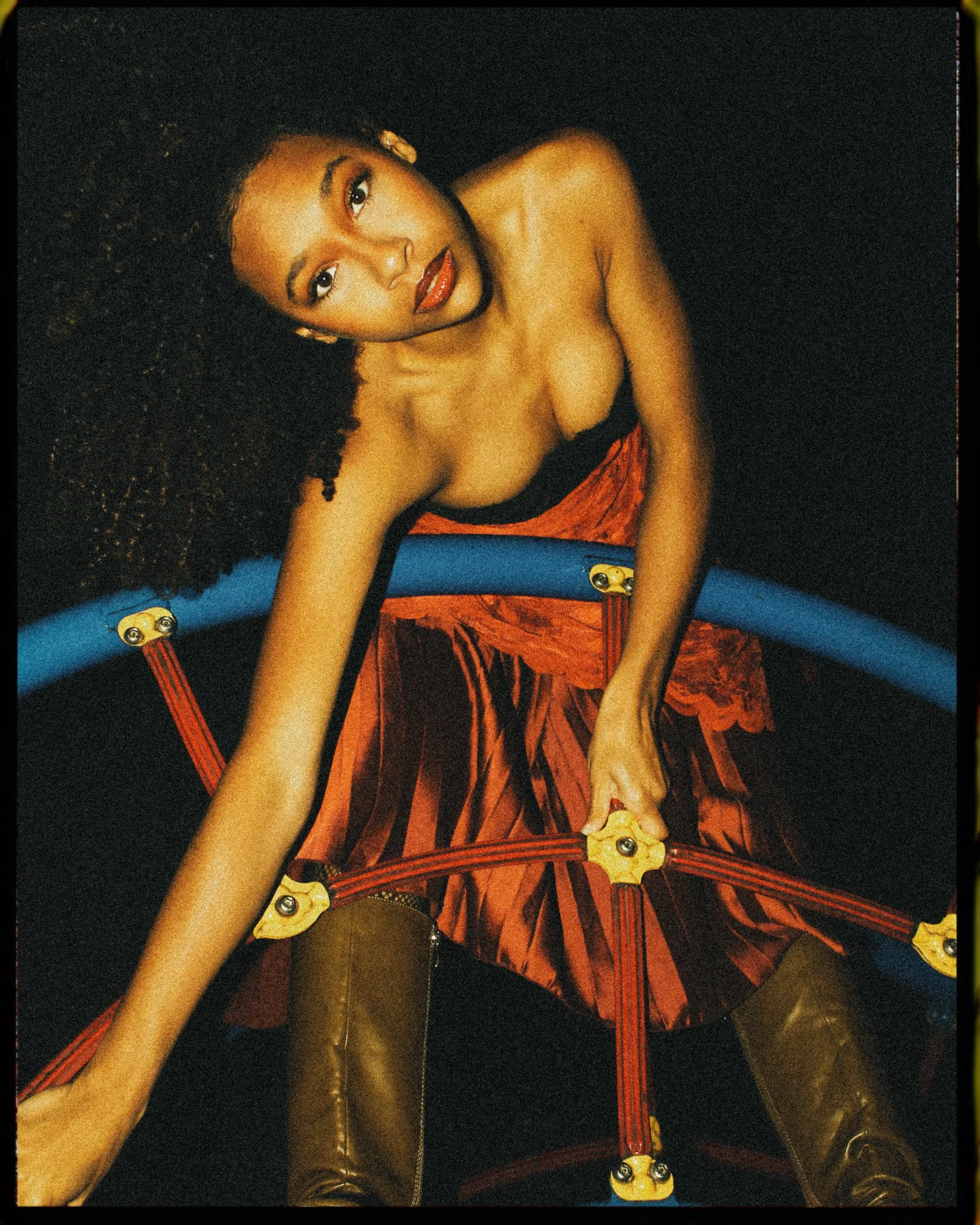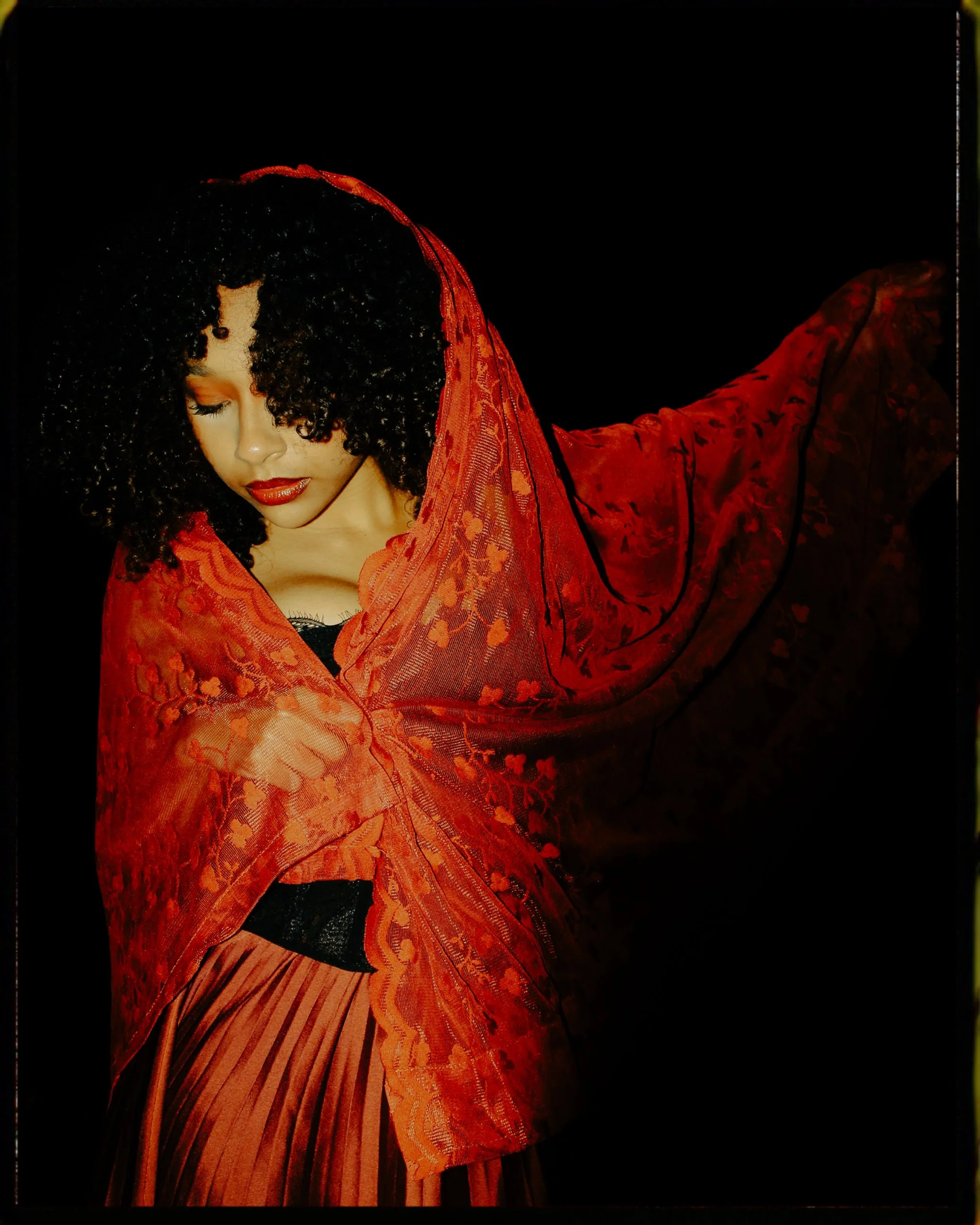 While editing these photos I wanted it to be both dramatically stylized while also having a moody vintage feel to it. So I created two different versions. One more focused and sharp with high saturation and crisp contrast whilst the other was grained over and yellow toned for that film photo vibe. As a finished product I think it’s giving freshly arisen Victorian vampire exploring human civilization while also having the vibe of the photos you show to your future kids to prove you were hot.