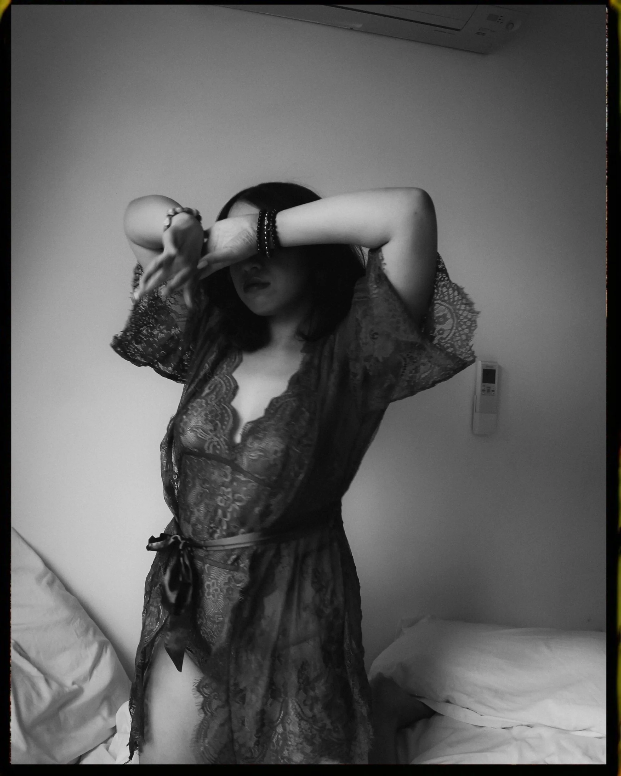 My cousin Rae is one of my biggest creative inspirations and sweetest souls on this planet. I’ve wanted to do a photoshoot for them for the longest but as they’re a nomad and as I’m chronically stuck in the states it’s really hard for our paths to cross. Luckily I finally got to see them during my trip to New York at the start of this year and we were able to create. They weren’t feeling the greatest physically this day and were struggling to feel sexy and in the mood for this kind of boudoir shoot, so I threw on some bad gyal music and hyped them up best I could, allowing plenty of time for breaks and rest in between poses. They started feeling the vibes and before they knew it were slaying every shot.