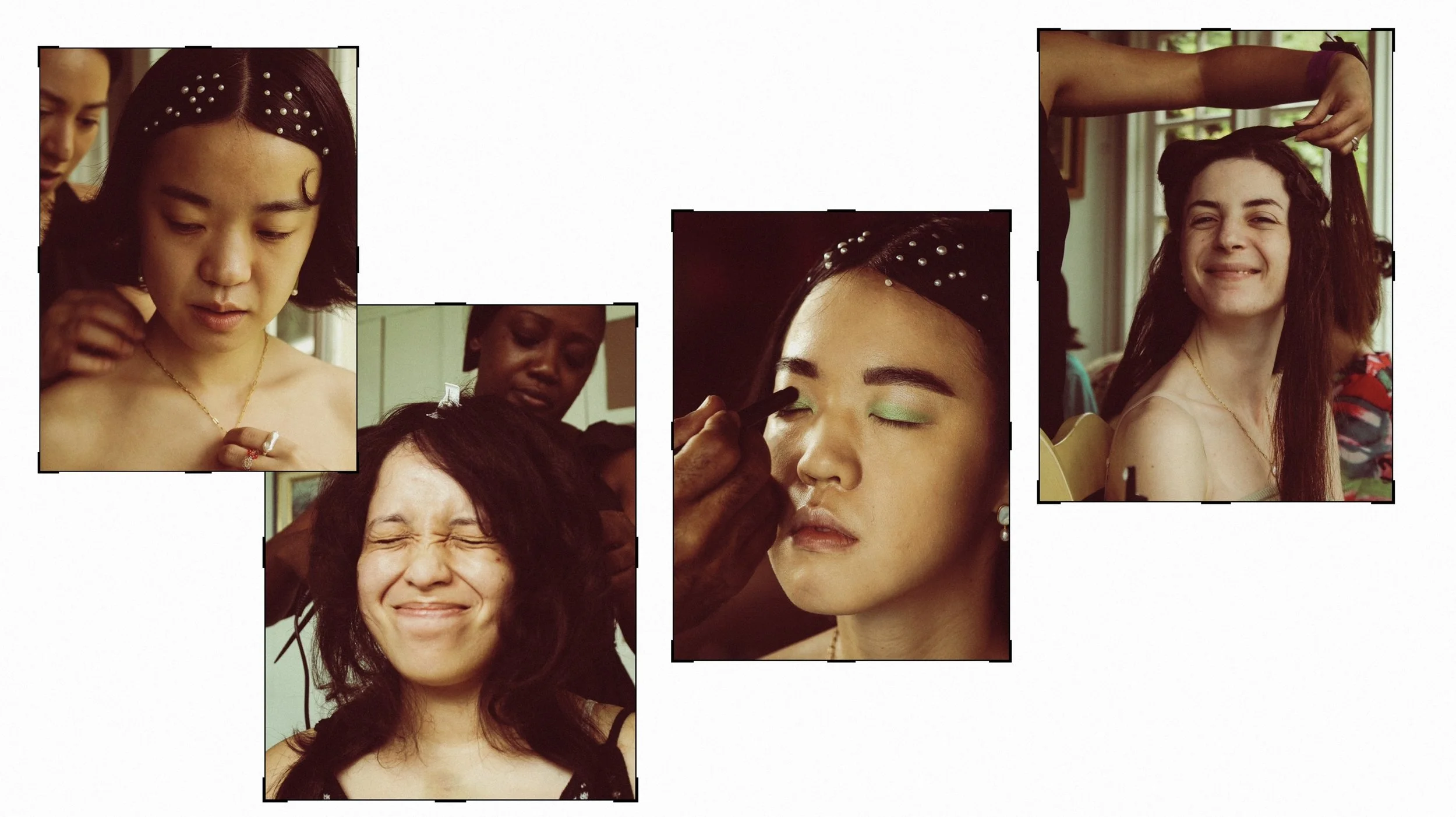 The Bride and her bridesmaids in hair and makeup.