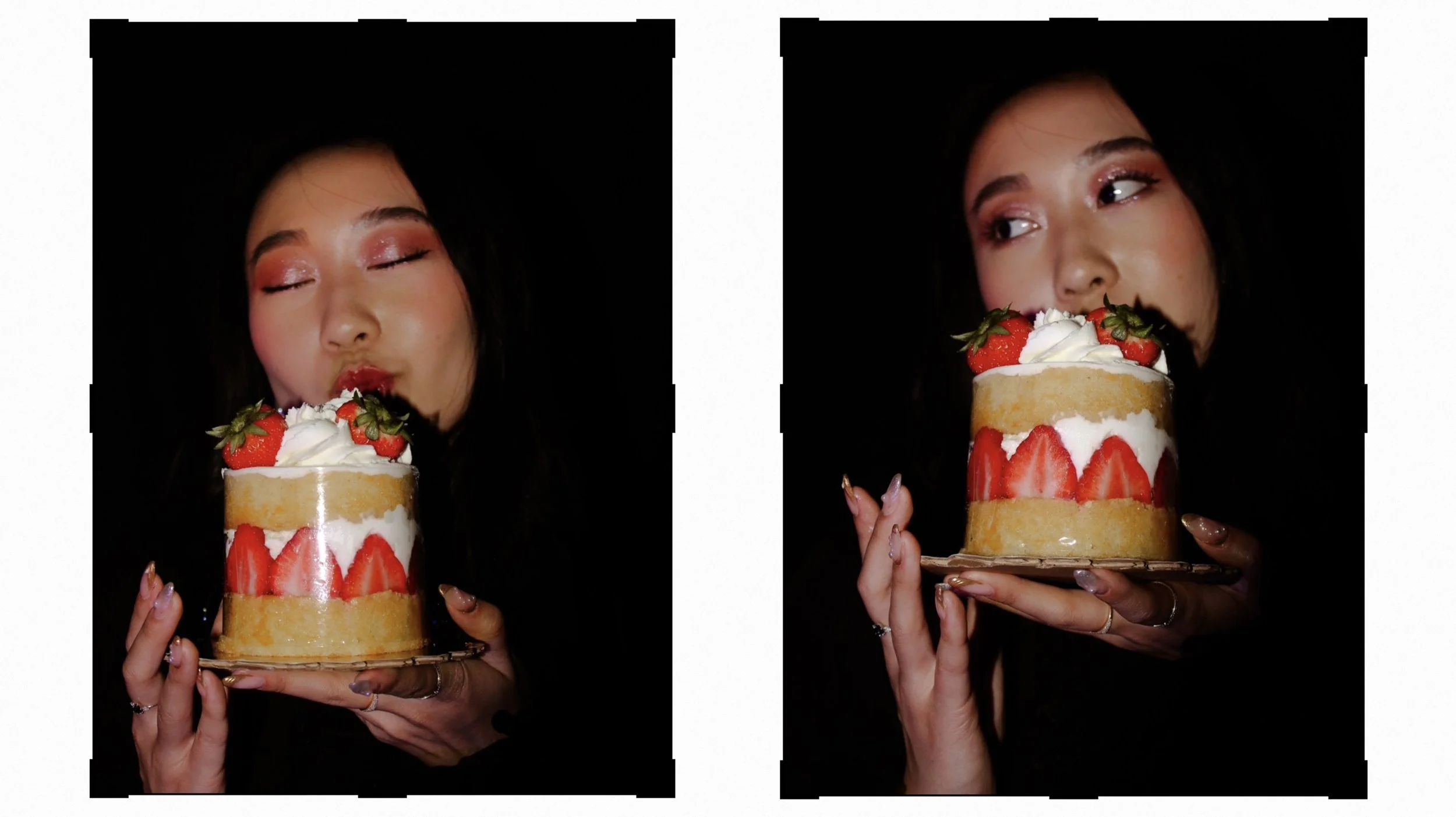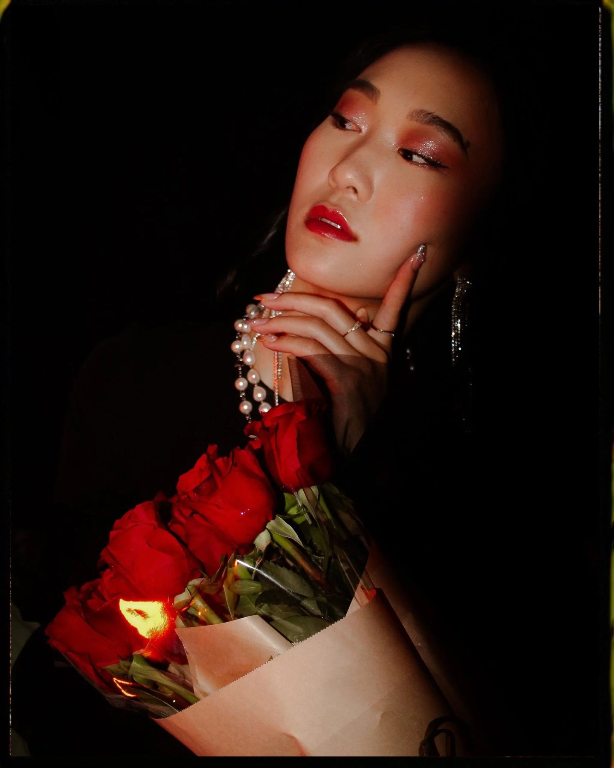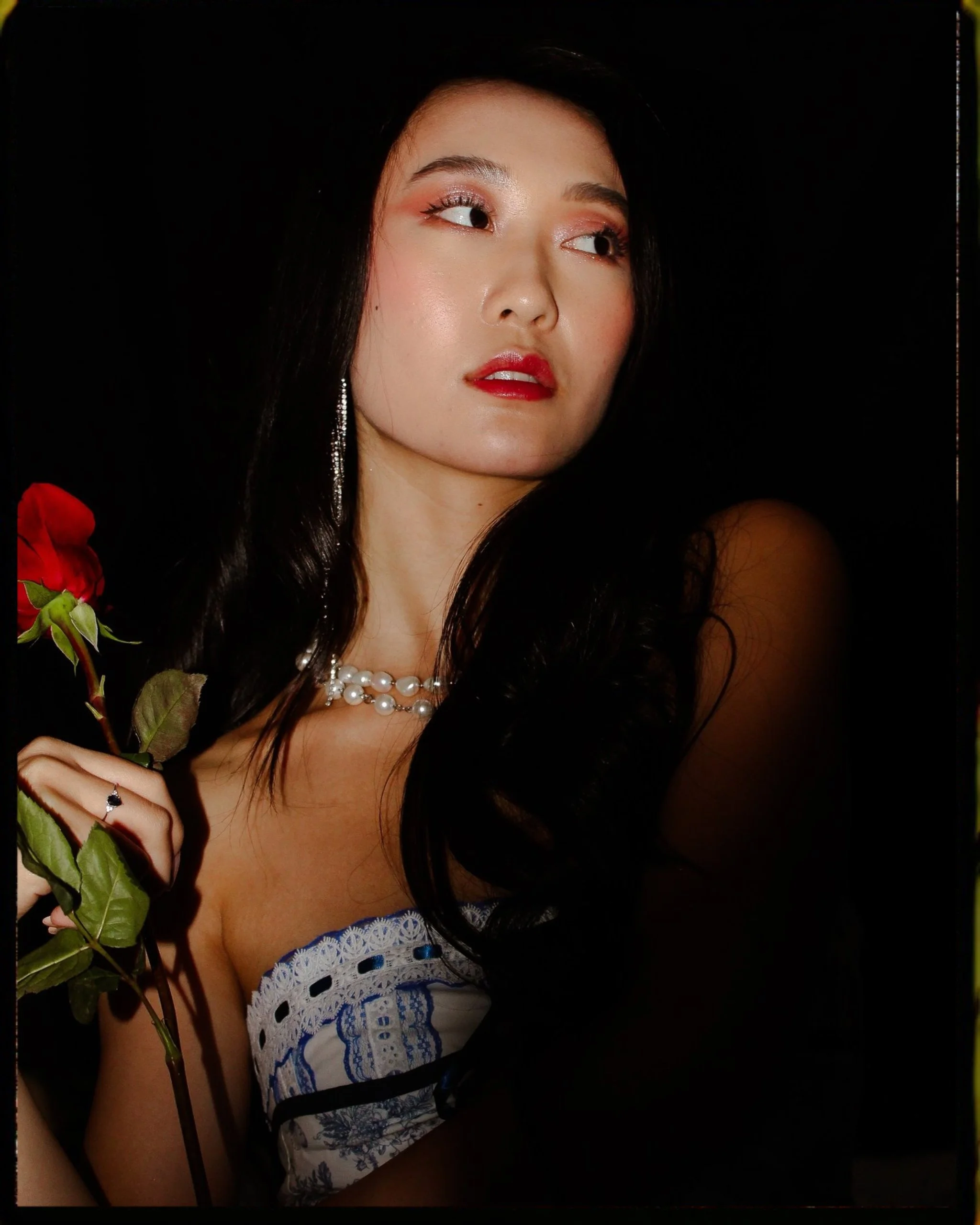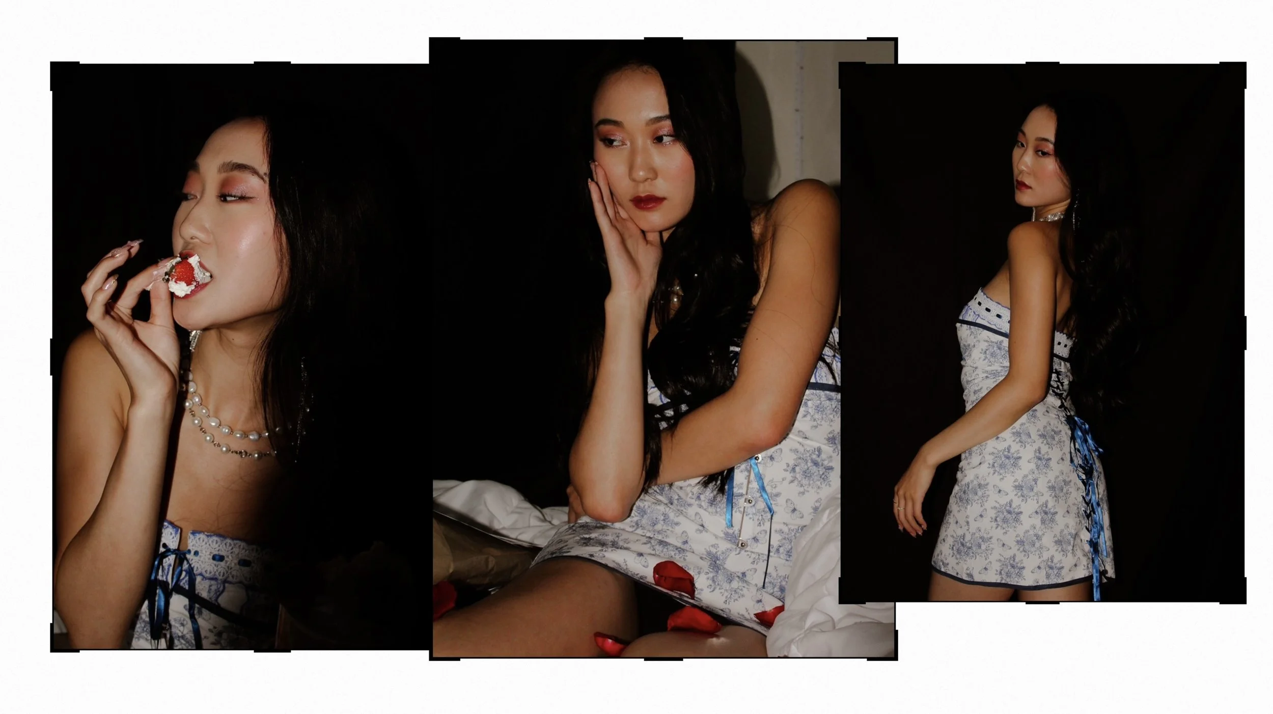Your typical birthday shoot but not. Instead of renting a studio we decided to save money and shoot inside my bedroom. I put up black backdrops over my walls and used my white comforter to introduce dark romantic vibes to the atmosphere. I also decided to use different sources of light, the camera’s flash, a red lamp, and a tri color sun lamp to have more dynamic coloring and enhance the gothic sensual vibes. Sasha brought roses and cake to use as props(the cake she ate later) but the roses fully completed the charming and intimate mood balanced perfectly with her bold red lip and black dress. We channeled many different vibes in this shoot, of course the traditional celebratory birthday shots but also whimsical lover and sad tumblr girl. It was interesting to see how many different shots could be captured in the same small space with limited materials.