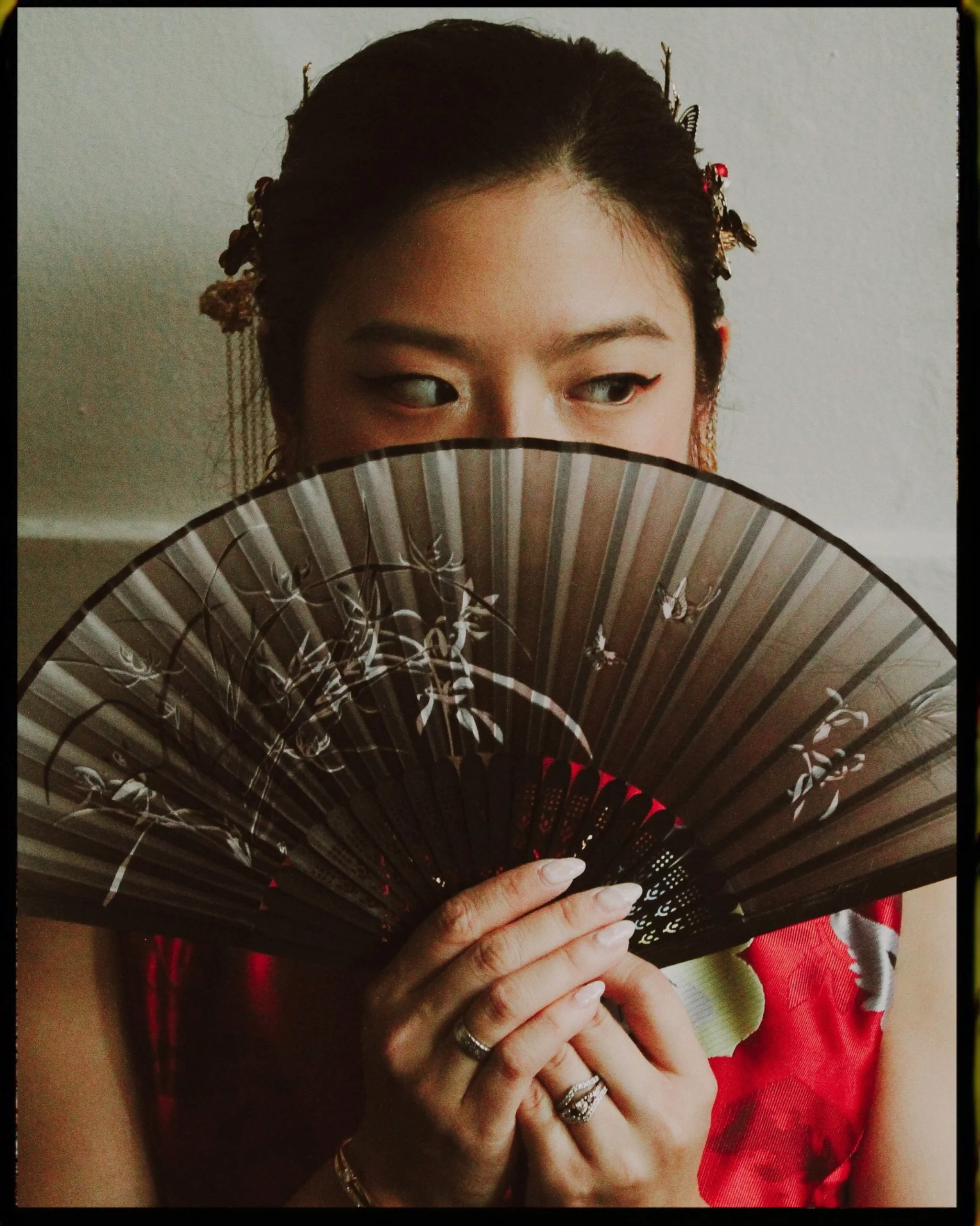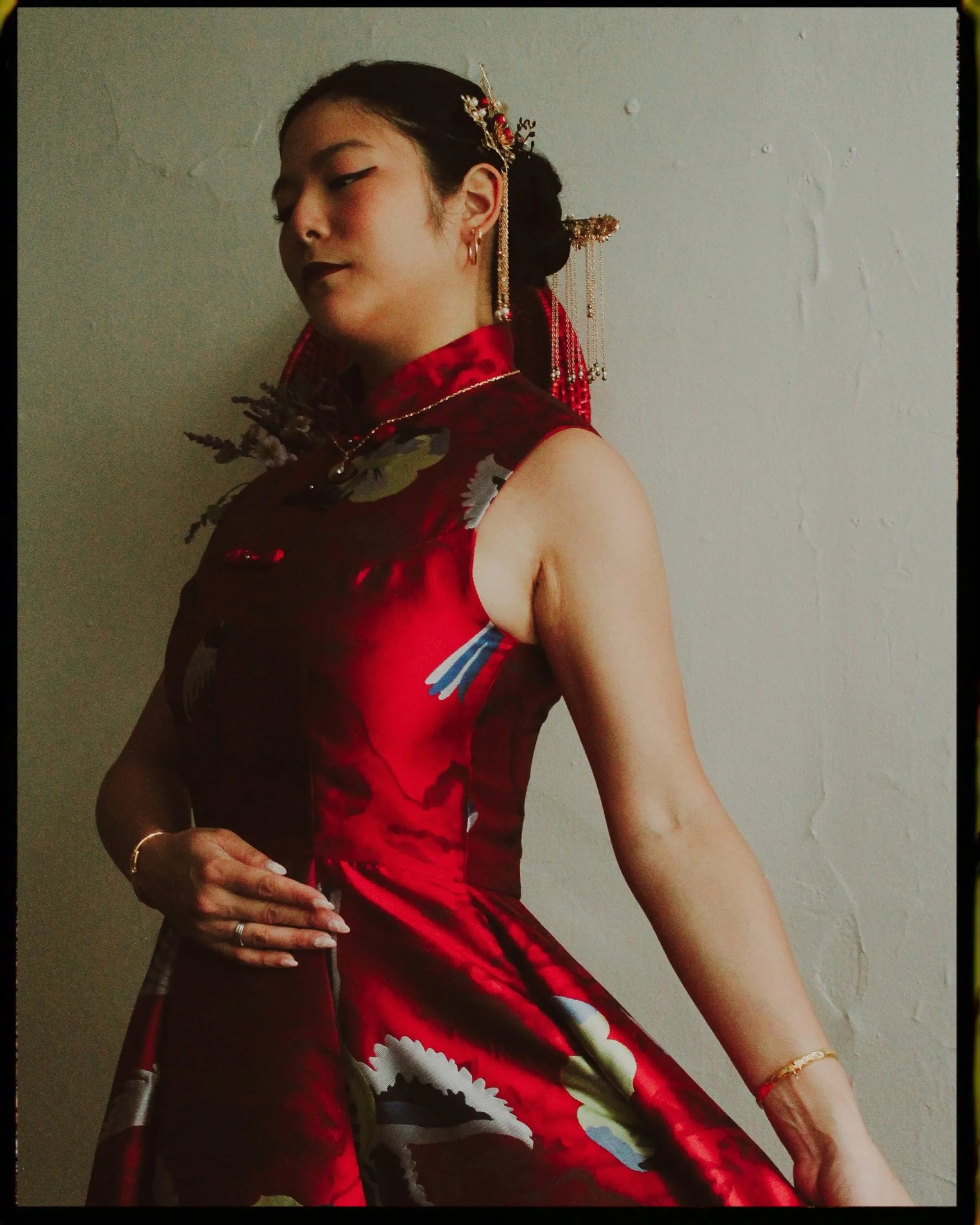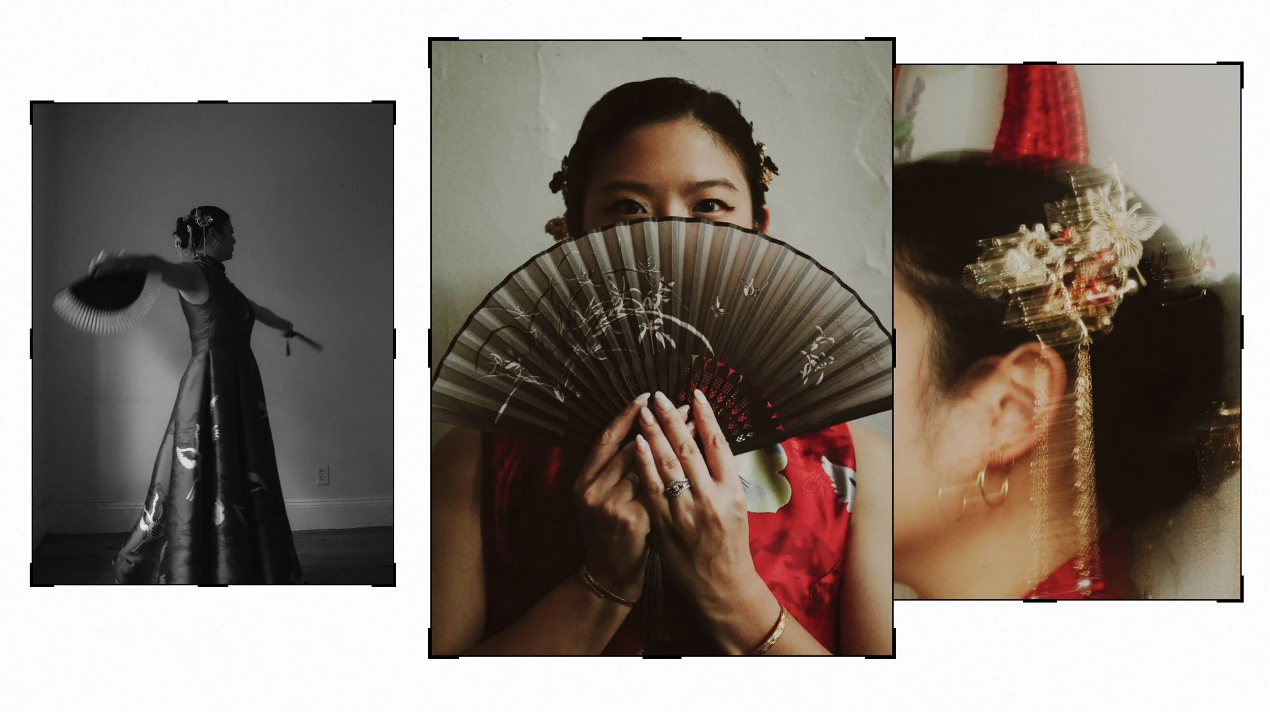 I did a modern Chinese culture shoot earlier in the year and soon wanted to try a more traditional take on it. Culture shoots to me mean dressing in clothing that is either traditional to or inspired by ones culture. I usually like to use props like food, games or accessories that are also unique to that culture. I want there to be no mistake of what you’re looking at when you see the photo. Stacey came prepared with her slightly modernized qipao and hair piece. I added in the fan and also the golden picture frame. We used early morning natural light to get that soft cool glow and I aimed for both traditional posing and a few fun shots as well. Stacey was engaged at the time so I also wanted to highlight the ring in some poses as well.