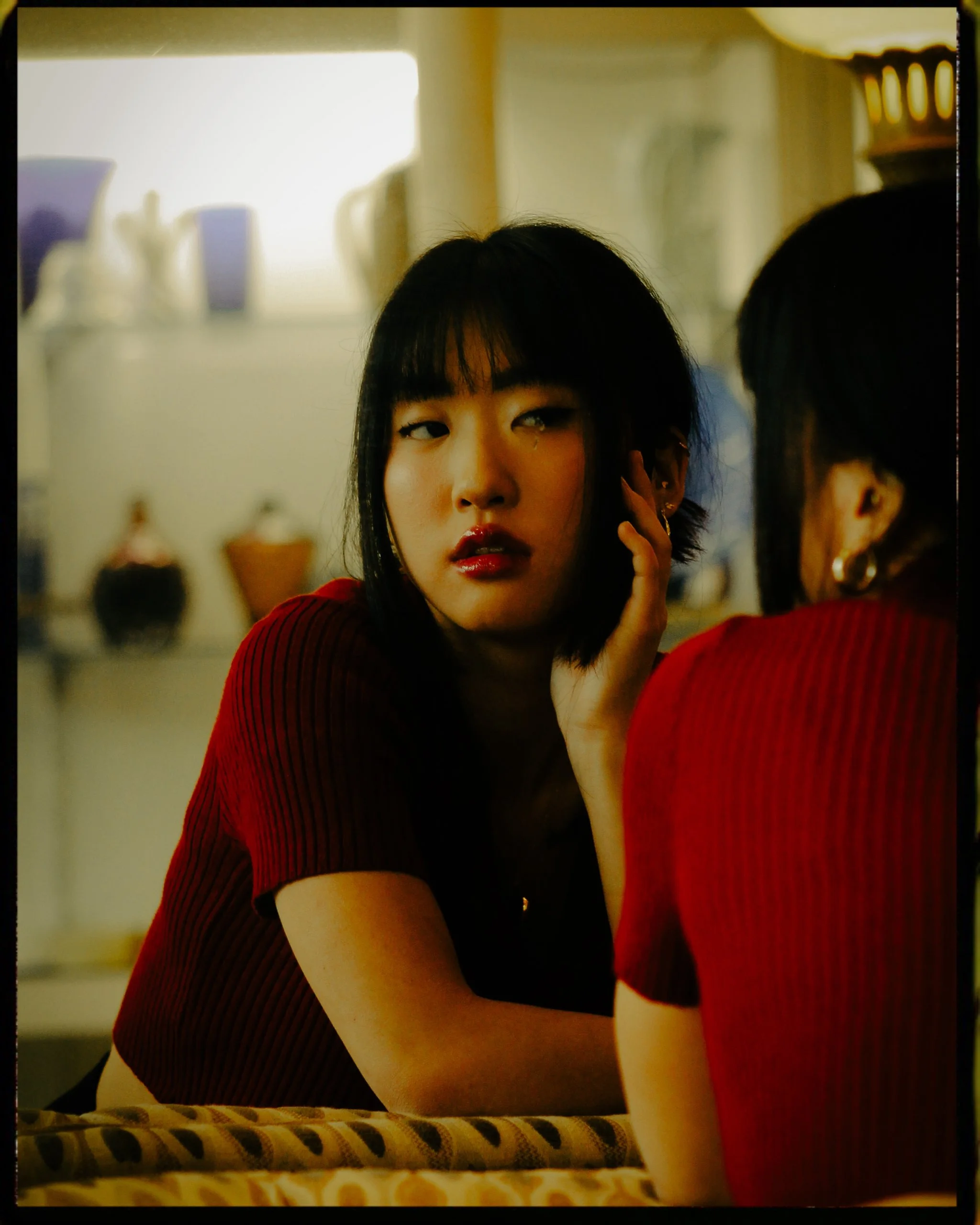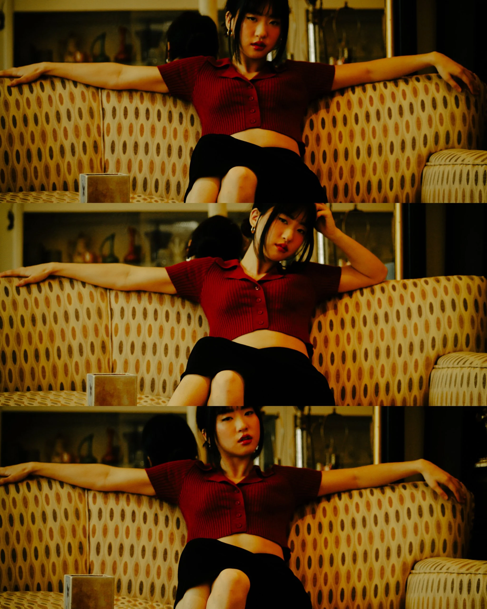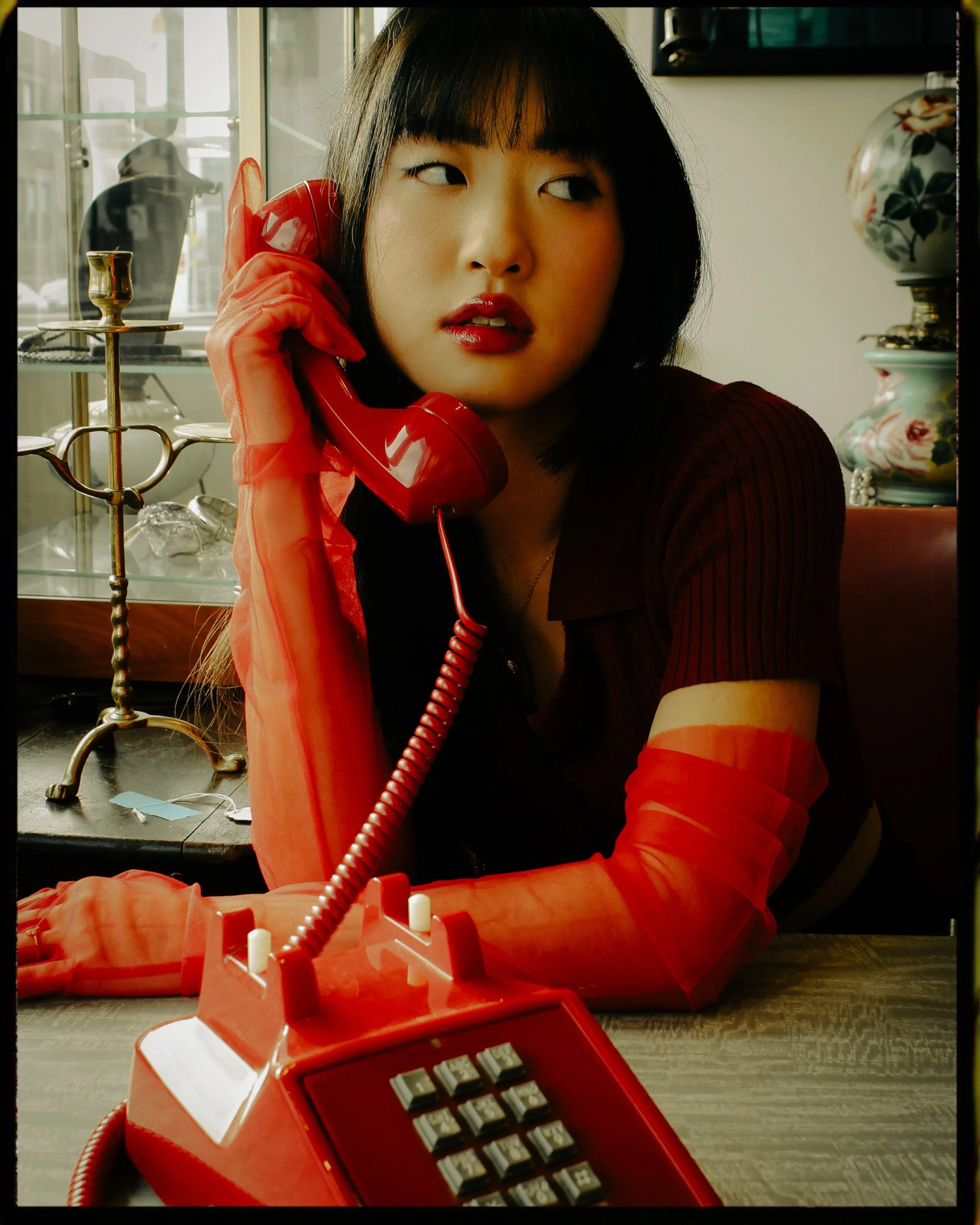 A modern take on lunar new year fashion set in an antique shop. After seeing a collaboration Teresa did with @traceycphotography I dove a little deeper into her account and fell in love with her simplistic but impactful style. I thought she could be the perfect model for a lunar new year inspired shoot and reached out to her to do just that. Since she unfortunately didn’t have any traditional clothing with her here in Boston(she recently moved to the New England area) we settled on lunar new year inspired colors and jewelry, hence the red and gold accents. I still wanted some sort of vintage feeling and that’s when the idea of an antique store setting took place. After calling a few shops for permission to shoot inside I was finally granted it by the kind and friendly owner of Fun Antiques, Jerry.Not only did he allow us to shoot he also allowed us to move around some of the pieces in his store and create our own set with the interior.