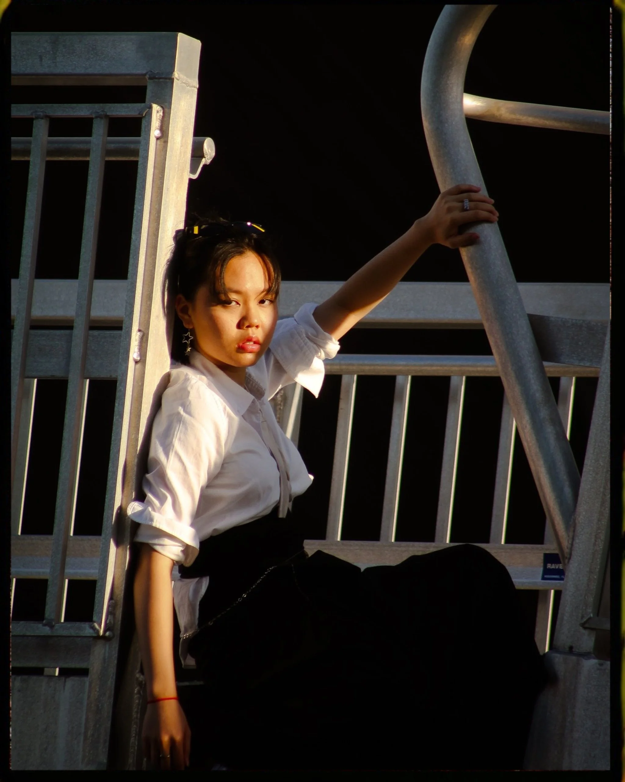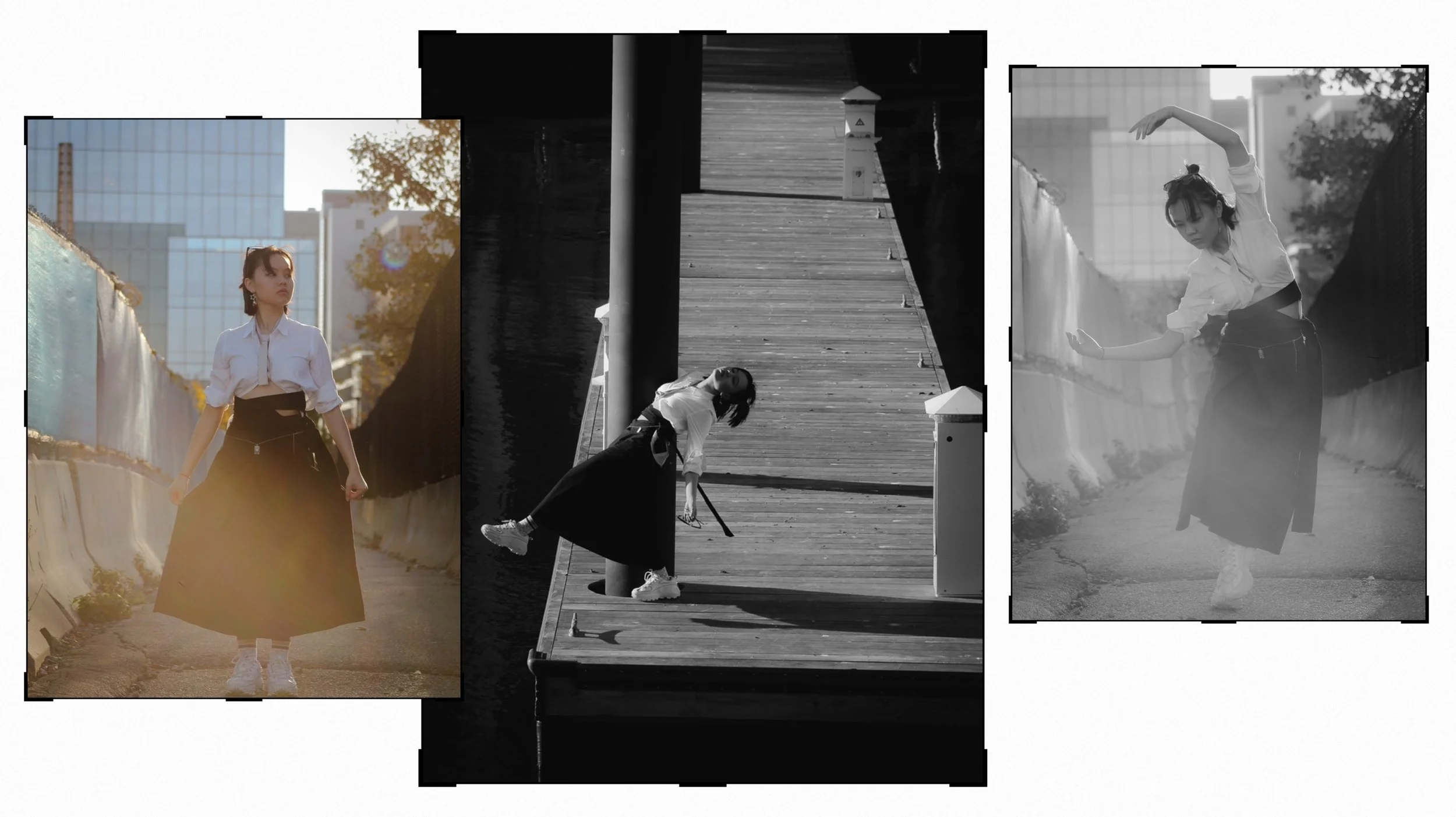 Zhu has a background in dance both hip hop and contemporary which is easily seen by her body control and fluid movements from shot to shot, that helped to create interesting and unique silhouettes. We used that skillset to the fullest and sought to juxtapose the shape of her pose to the setting. The background is all hard steel and city but her movements are soft and graceful. Using my 70-300mm lens I was able to position myself very far from the model and still capture distance as well as clarity of features that added another layer to the story. The images conjure emotions of adventure, longing, and a individualist confidence that glows outward from within.