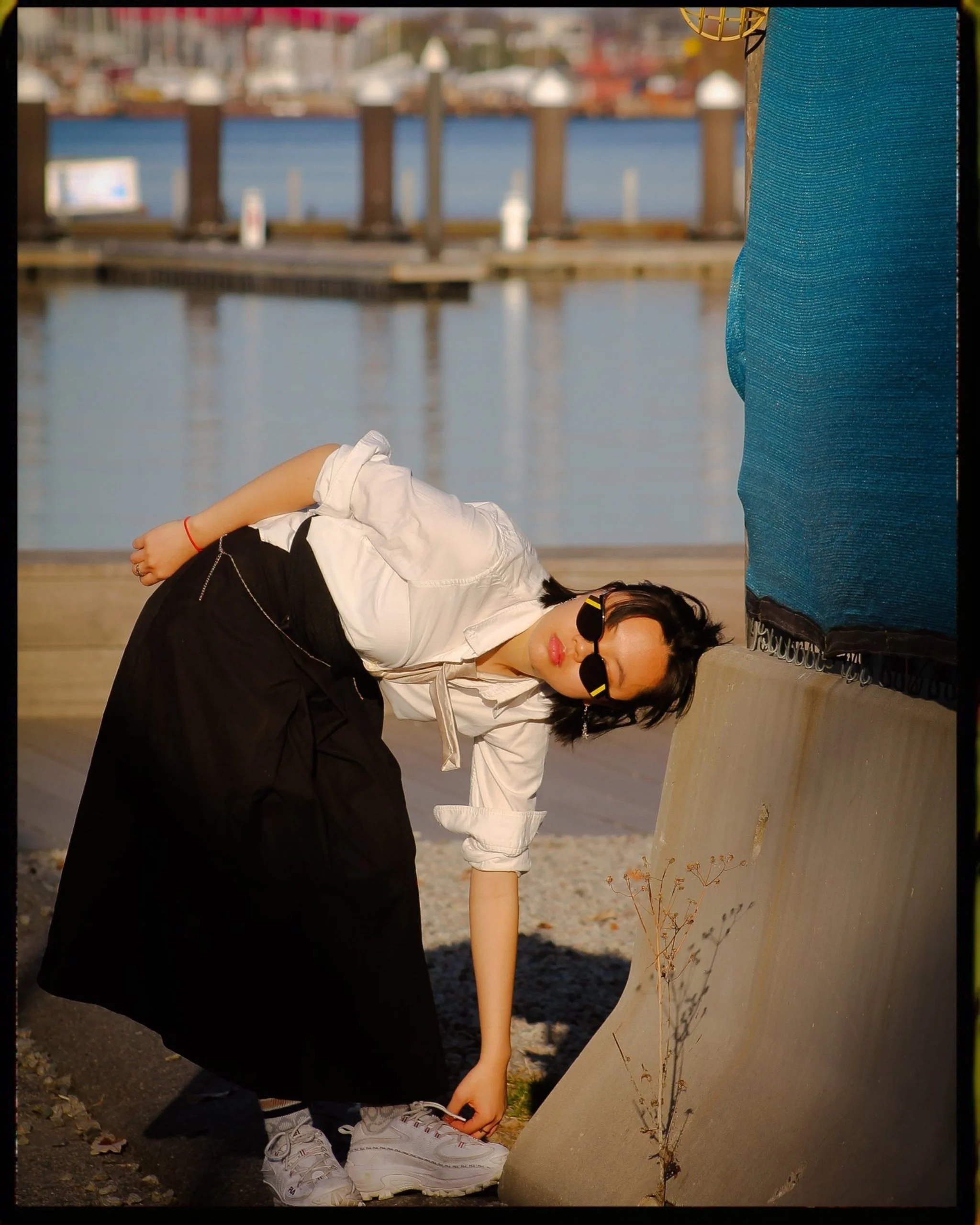 Zhu and I first met on the dating app Hinge. She was in town for a couple weeks and we started speaking a few days before she had to leave back to England. The more we spoke the more we had in common, from music, to fashion, to the arts and more. Instead of pursuing a romantic relationship we instead decided to pursue a platonic one and focus on creating something during her short time in Boston. The concept for this shoot is what happens when you decide to make magic not love. Putting carnal desires on the back burner and bringing the artists brain to the forefront. Despite just meeting our conversation flowed organically and we were able to enjoy many laughs throughout the shoot which made for an extremely relaxed atmosphere, fueling our ability to brainstorm interesting shots, give and take direction and achieve some amazing photos.